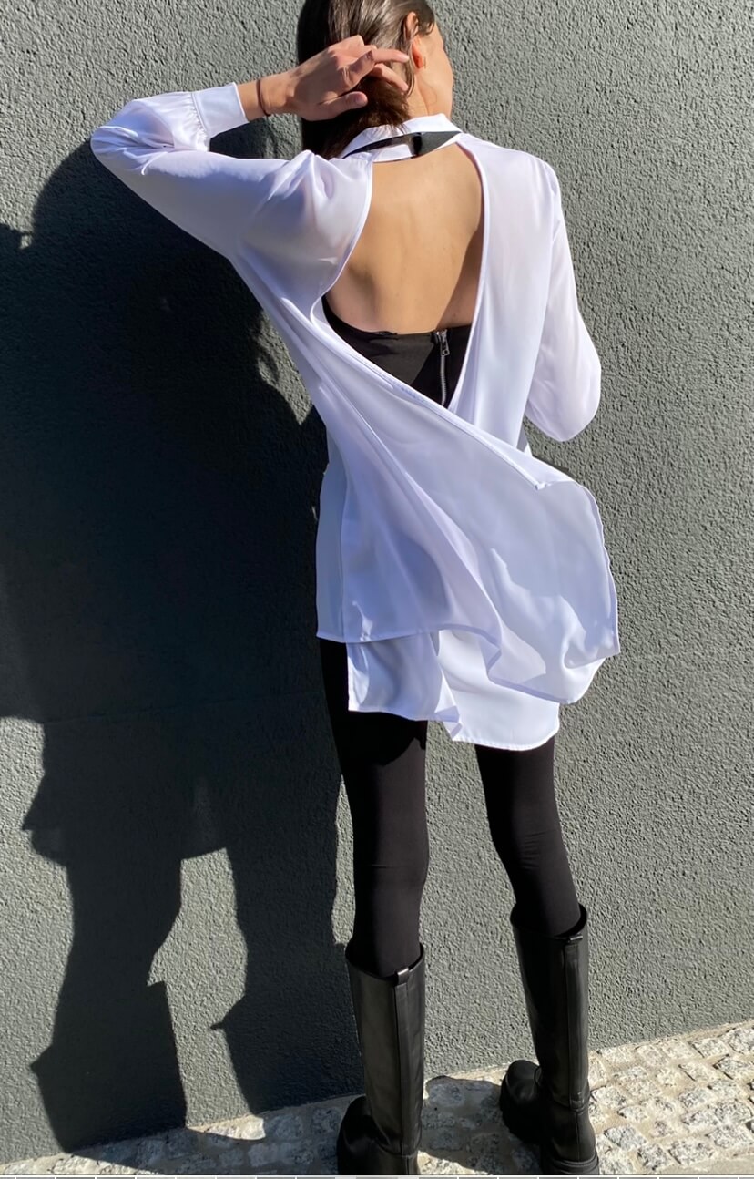 Cooles Top in Schwarz, Rückseite mit Reißverschluss. 95% Polyester, 5% Elastan. Fällt größengenau aus.