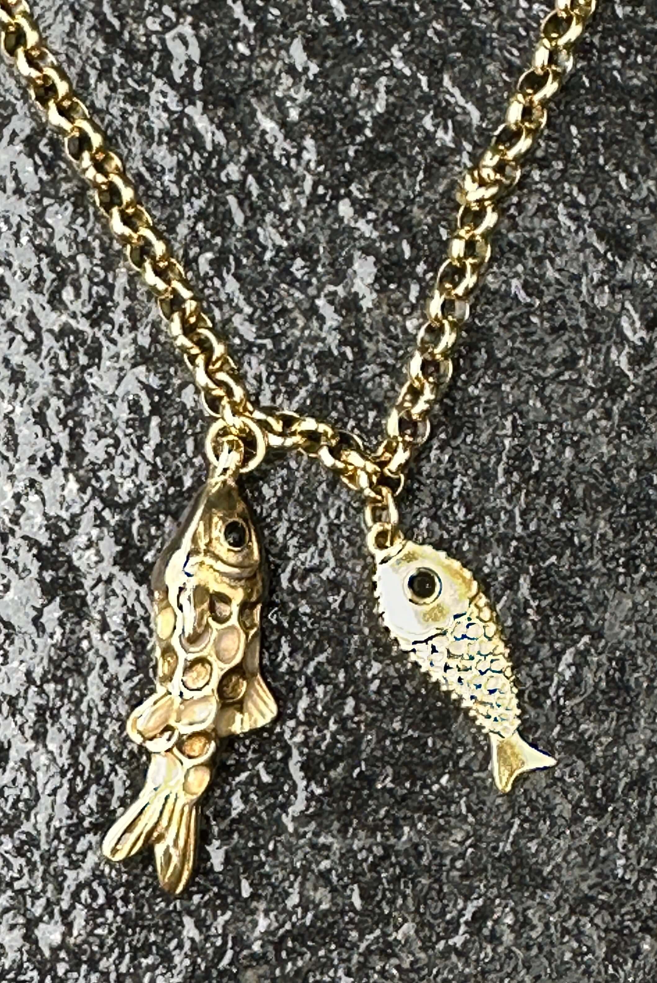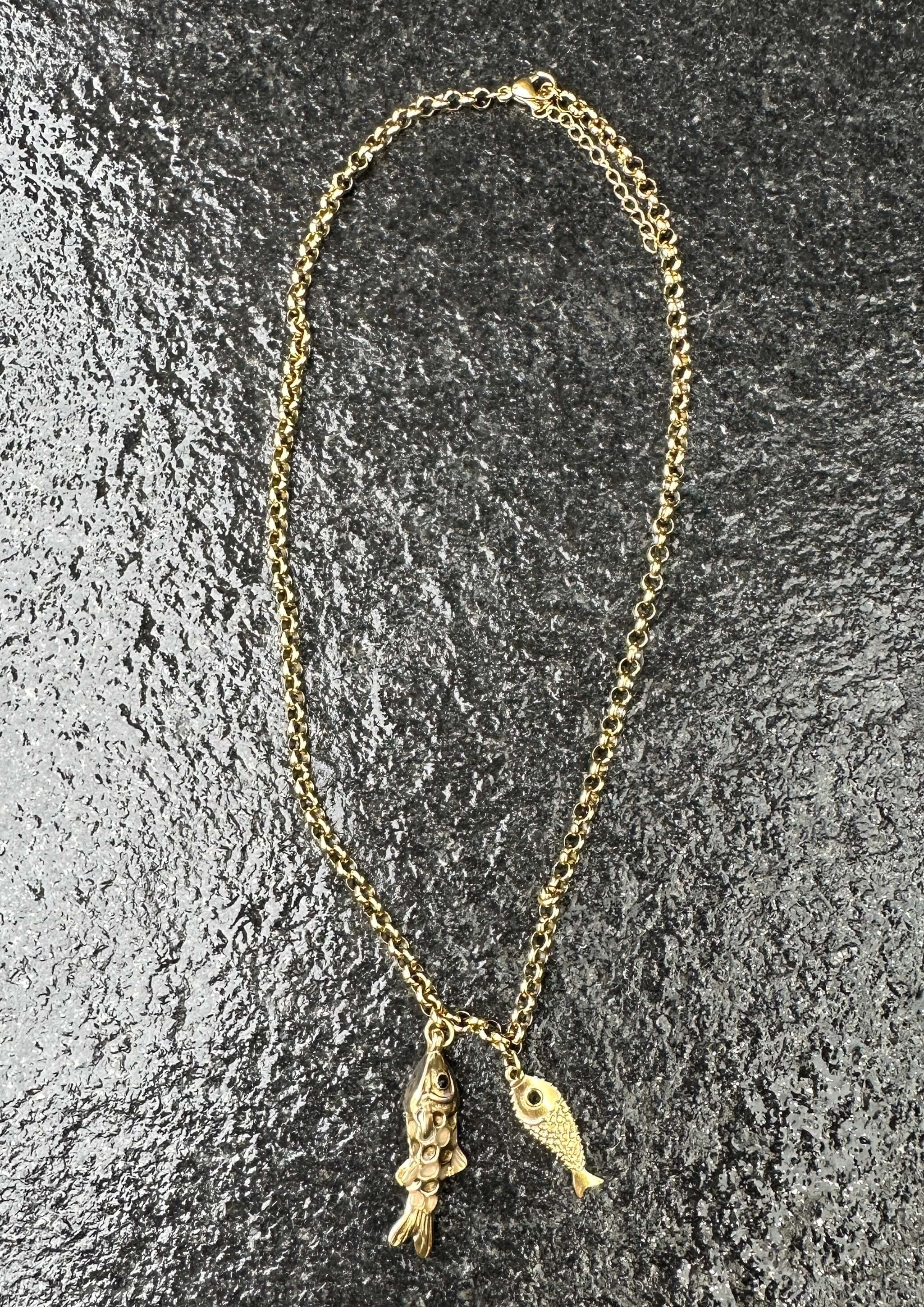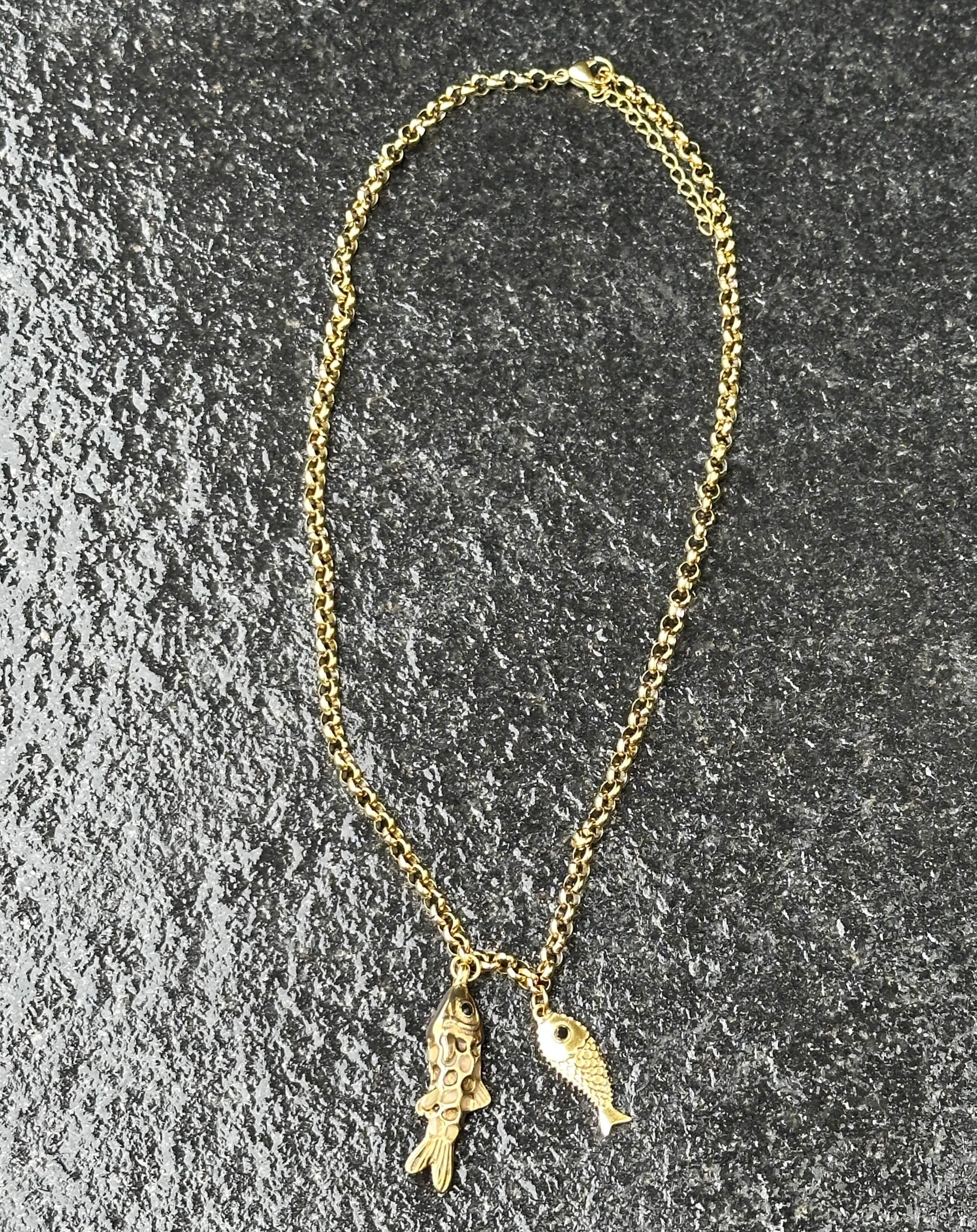 Diese edle, goldfarbene Kette mit Fisch Anhängern.