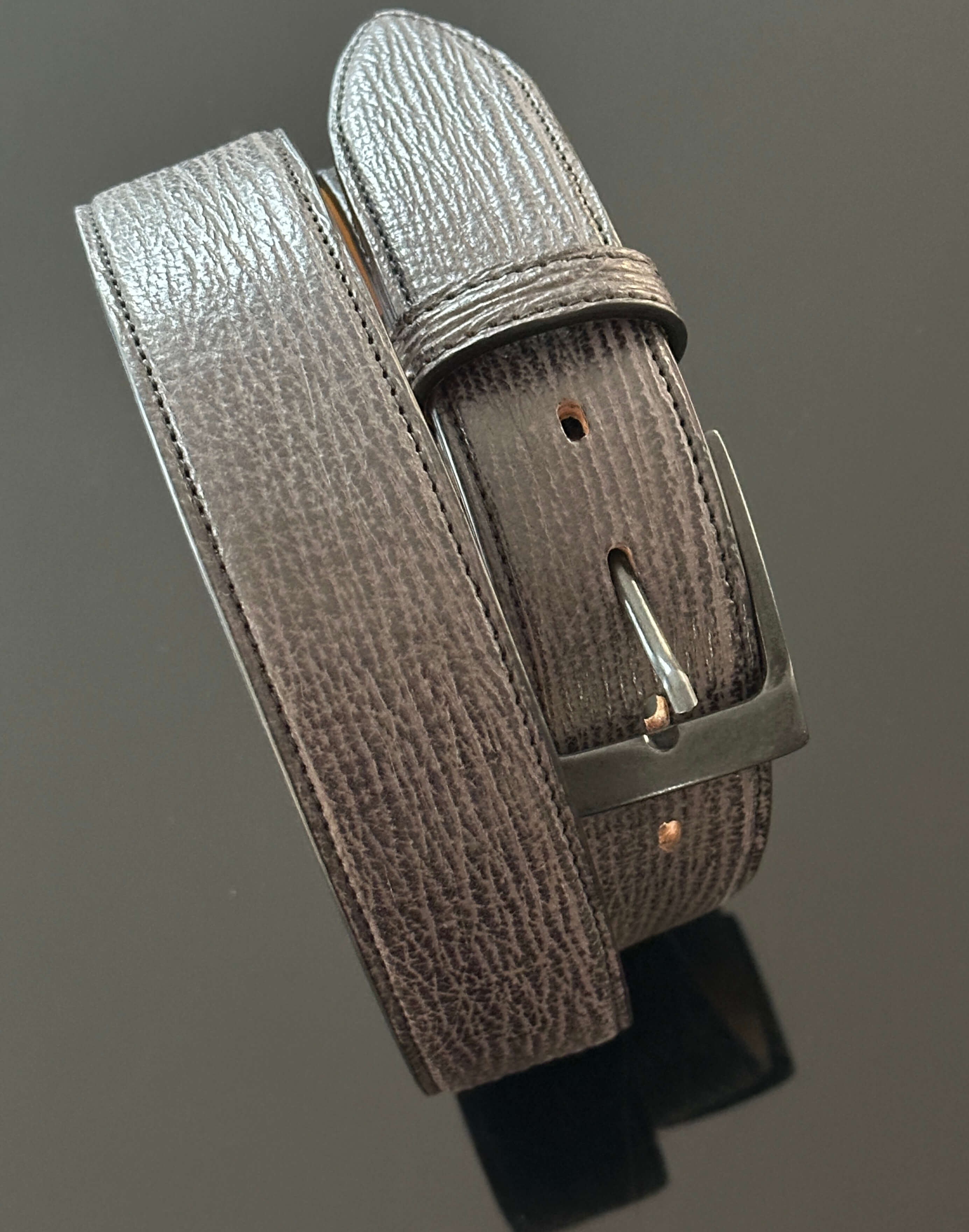 Cooler handgefertigter Ledergürtel aus Hai Leder in Anthrazit. 100% Leder, aus Zucht mit Zertifikat.