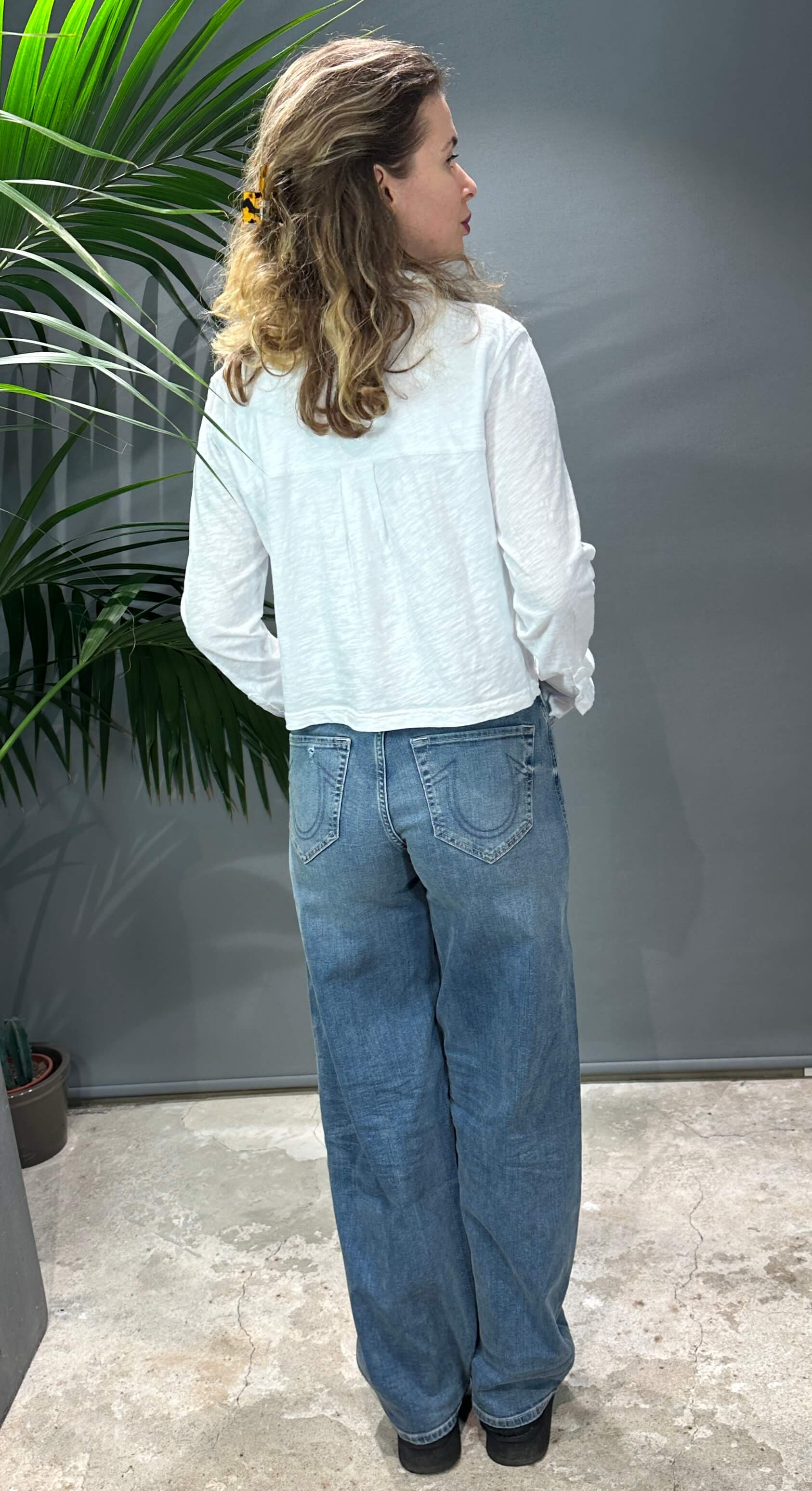 Coole cropped Bluse in Weiß mit 2 Brusttaschen. 100% Baumwolle. Fällt größengenau aus.