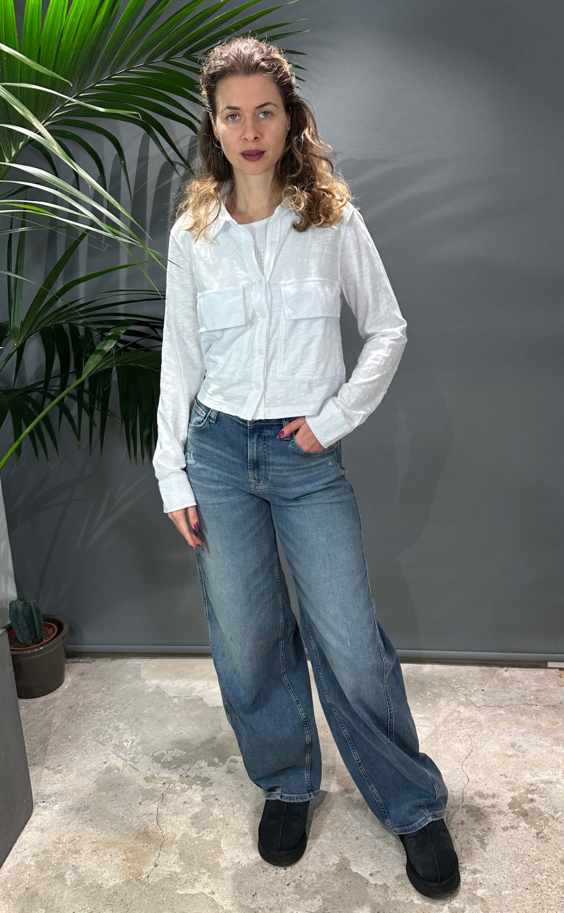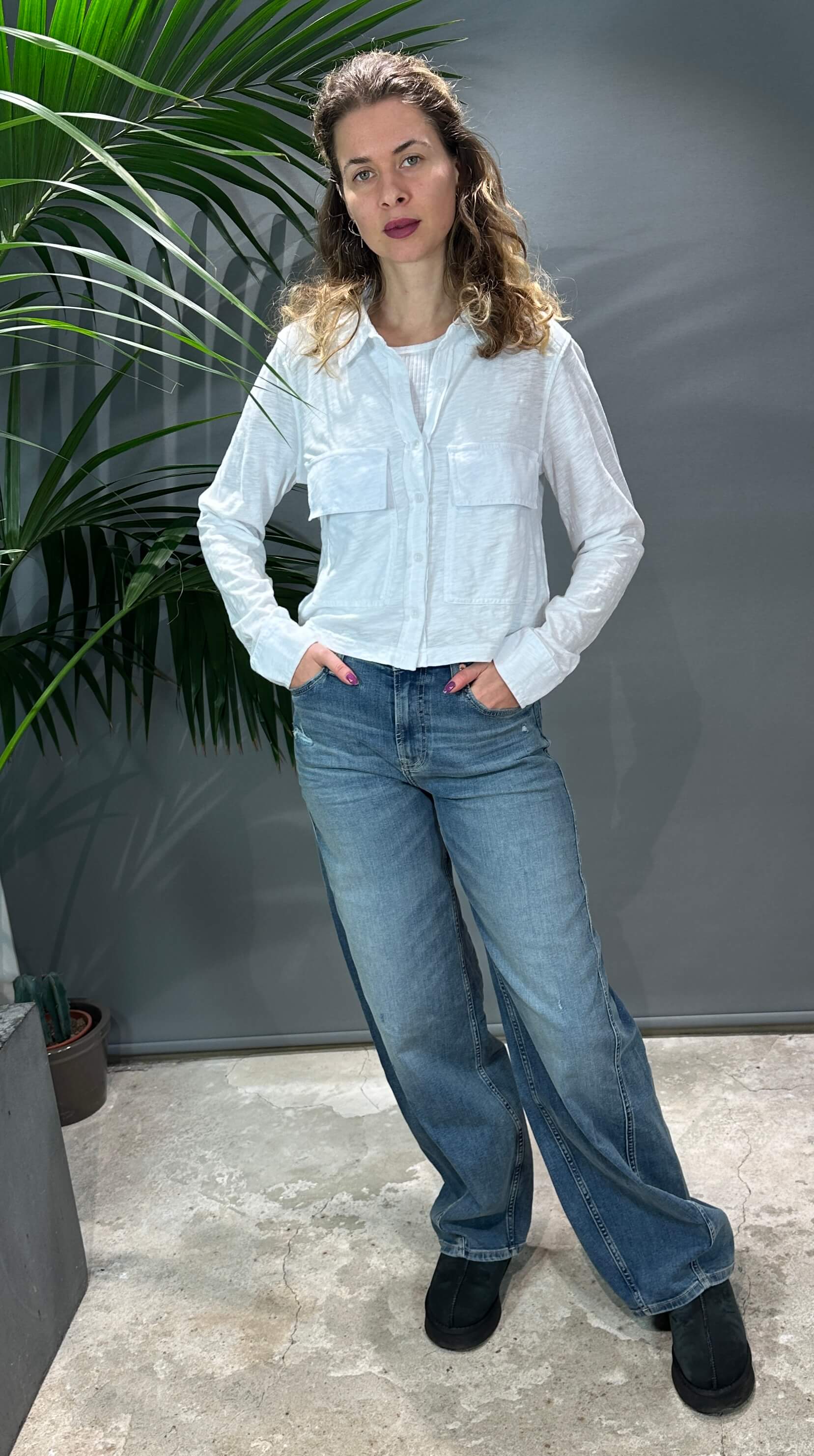 Coole cropped Bluse in Weiß mit 2 Brusttaschen. 100% Baumwolle. Fällt größengenau aus. mehr