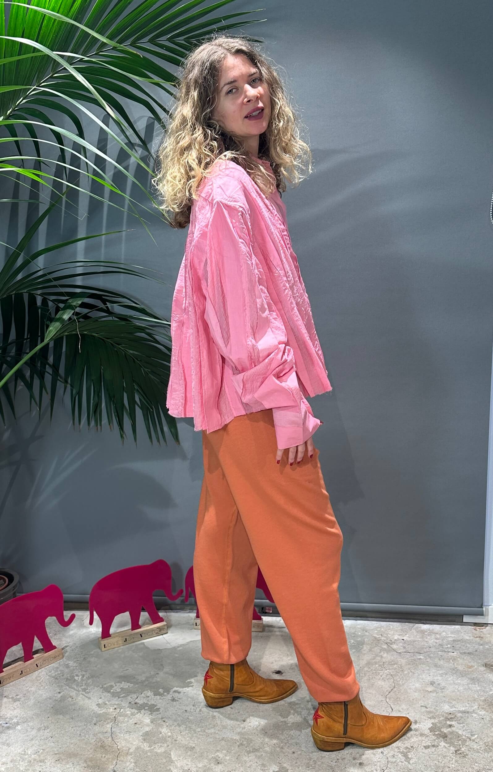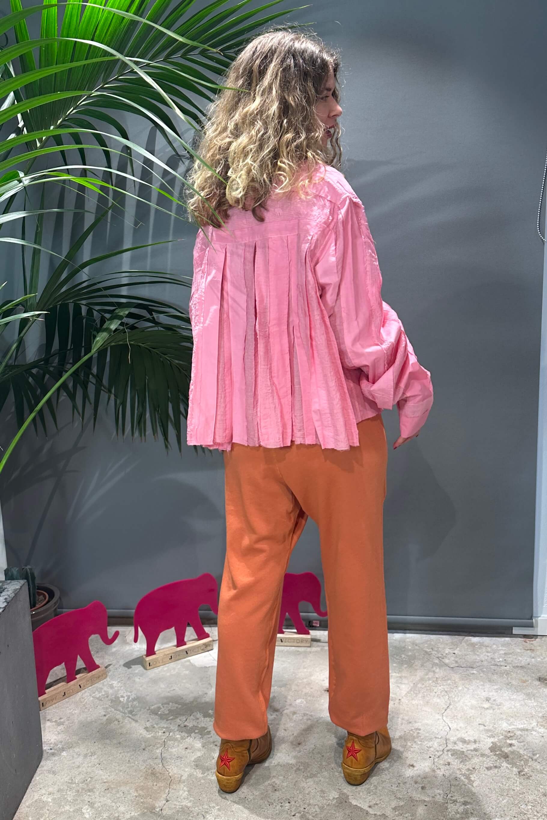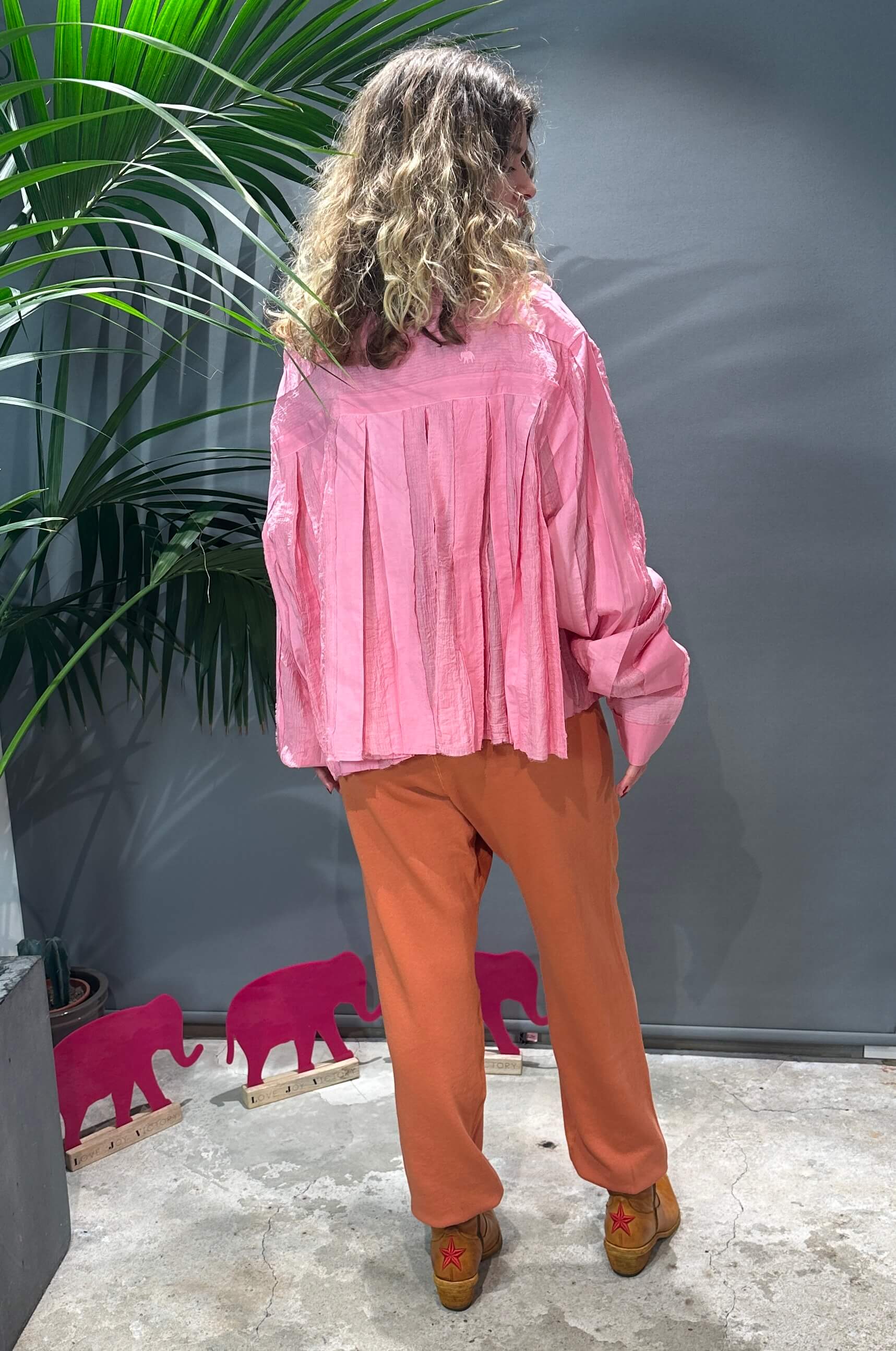 - Kleine Elefant-Stickerei auf der rechten Rückseite