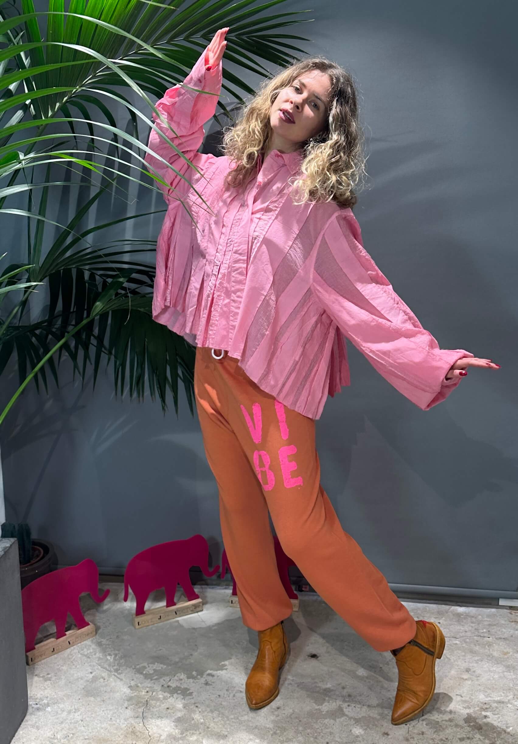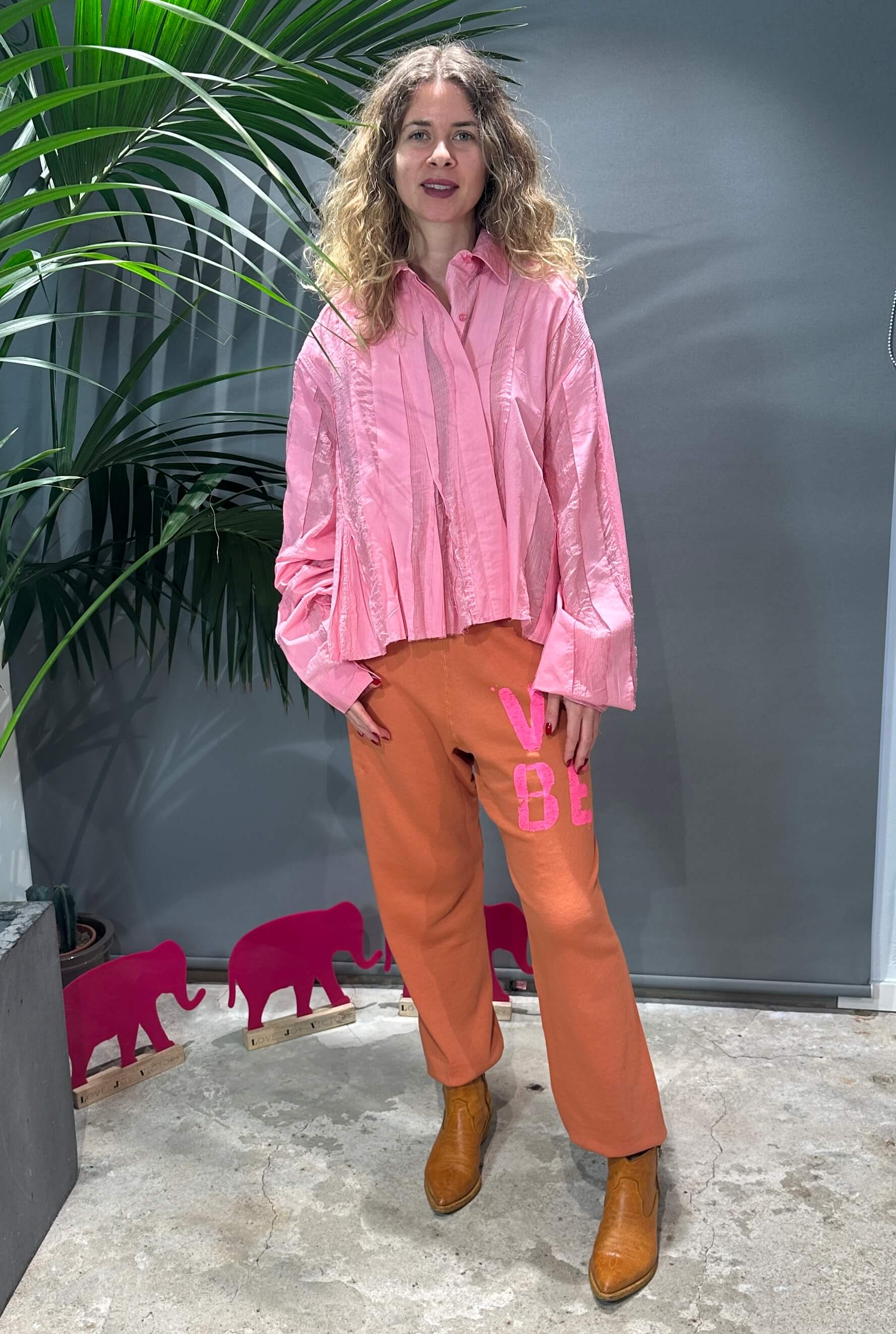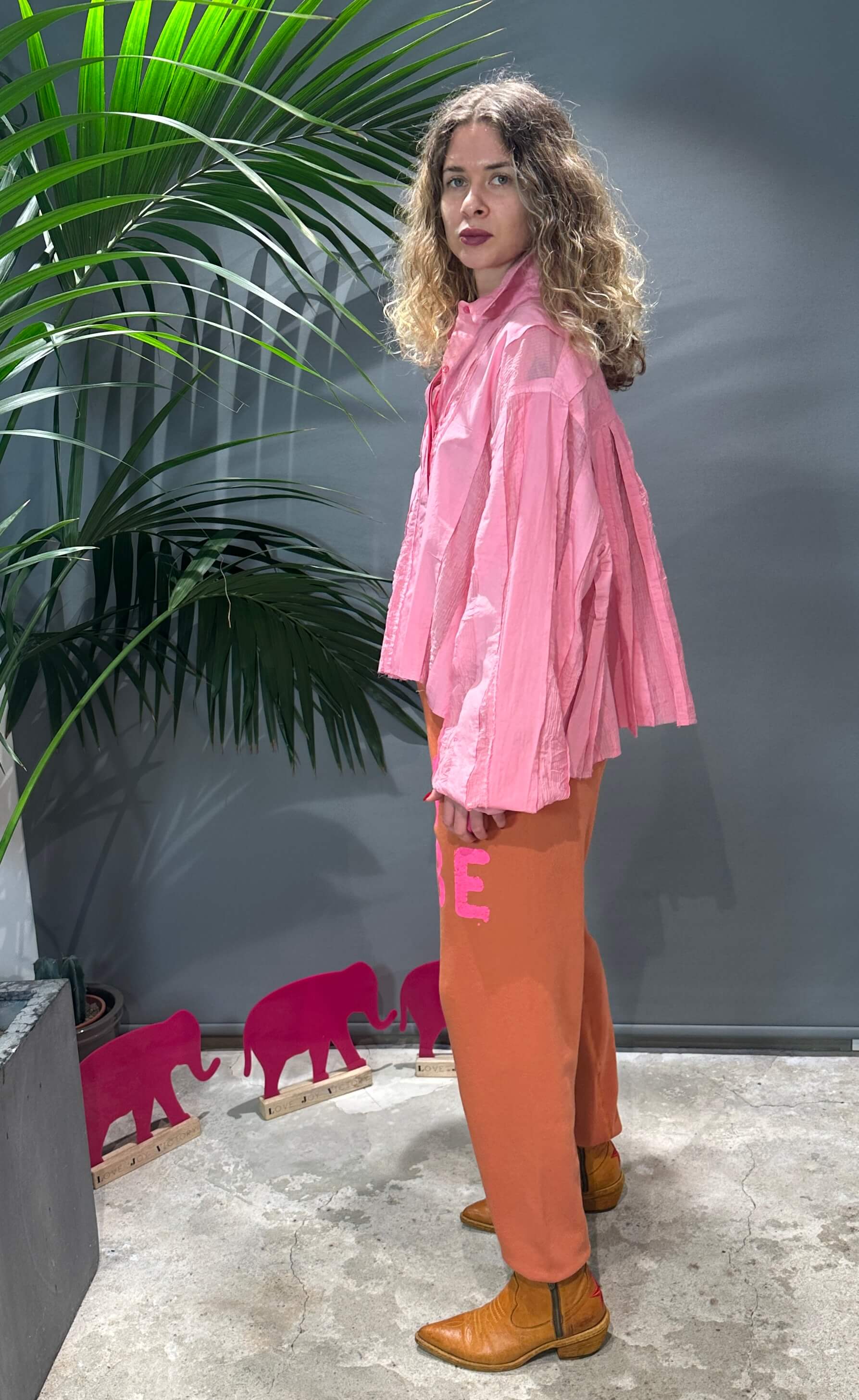 - Kleine Elefant-Stickerei auf der rechten Rückseite
