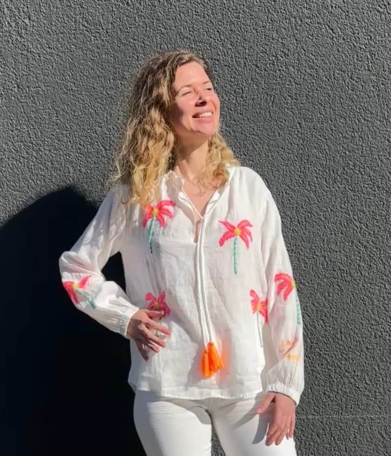 Produktinformationen "Leinenbluse Palmtrees offwhite"