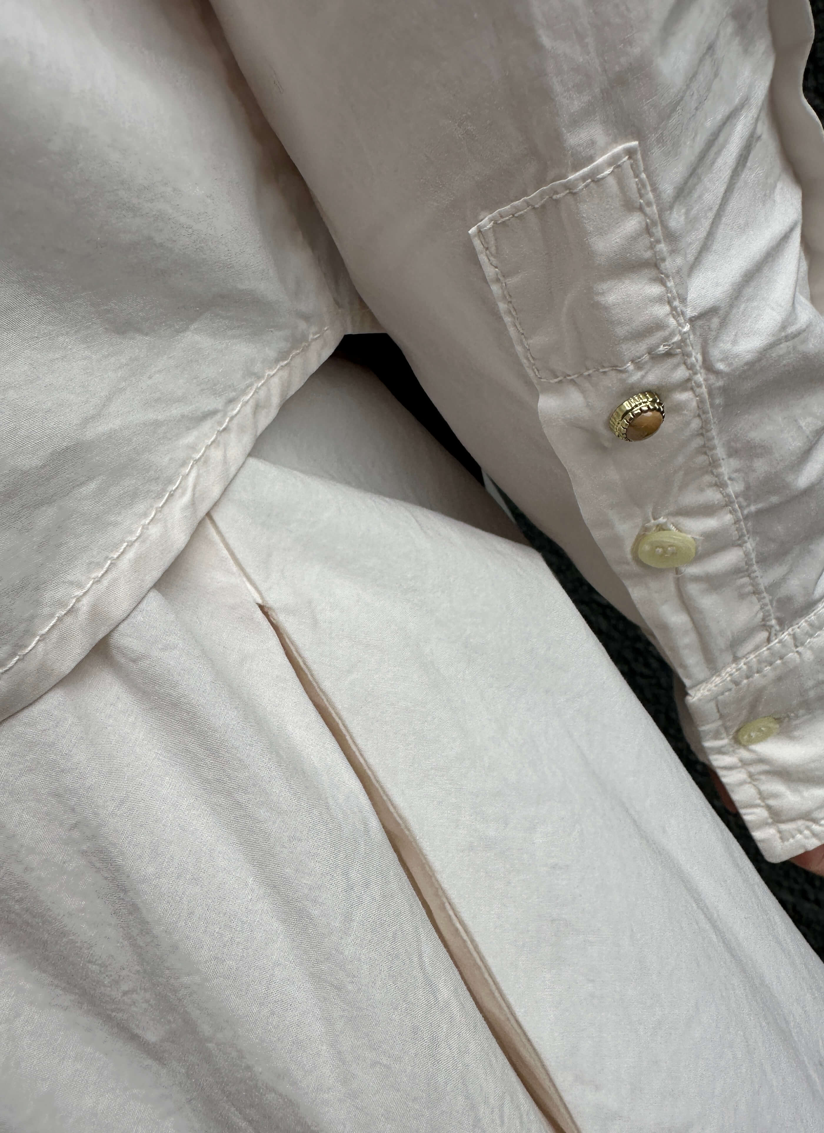 Coole cropped Bluse in Kalk mit Brusttasche und Knopfleiste. 100% Baumwolle. Fällt größengenau aus.