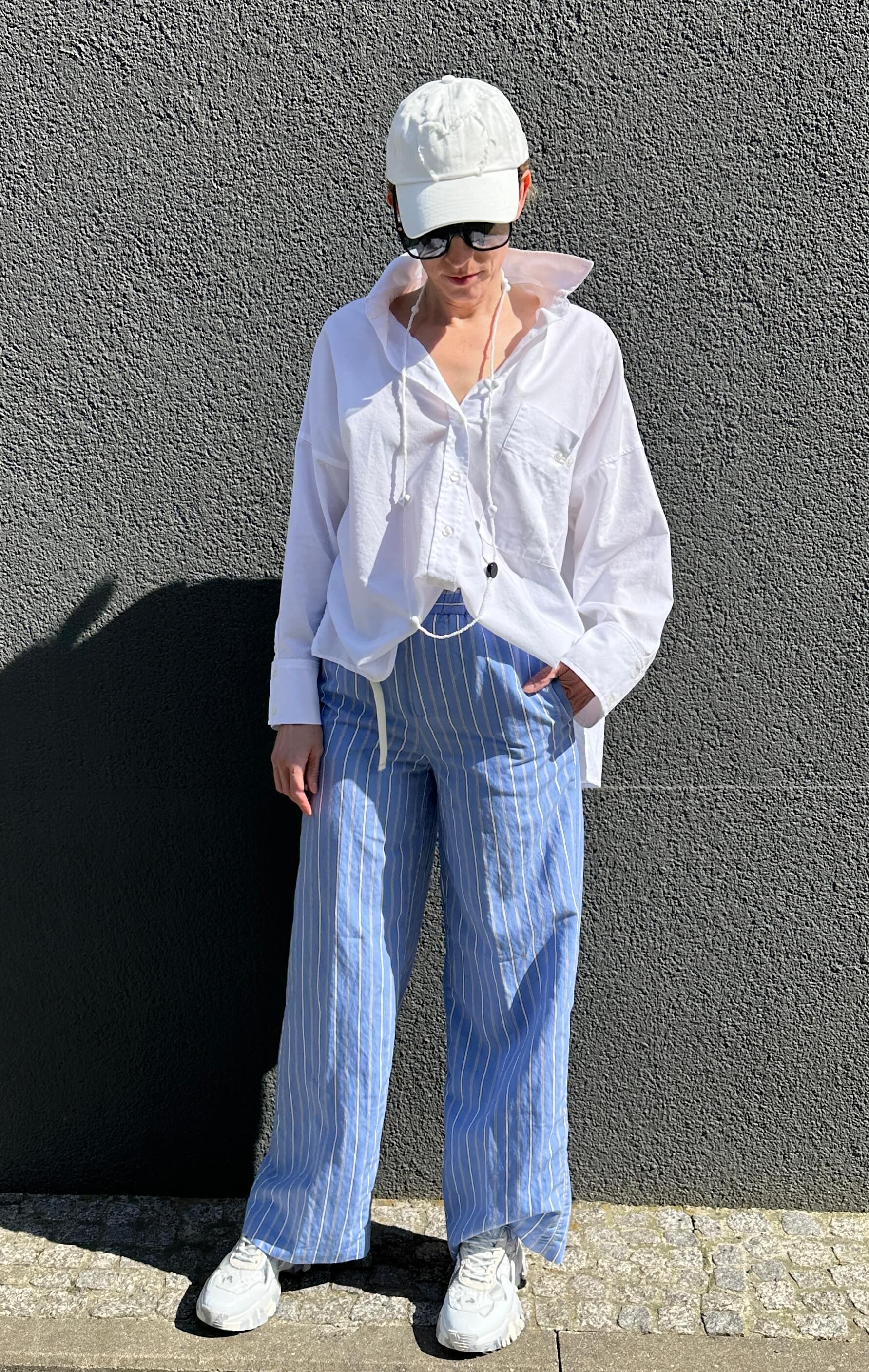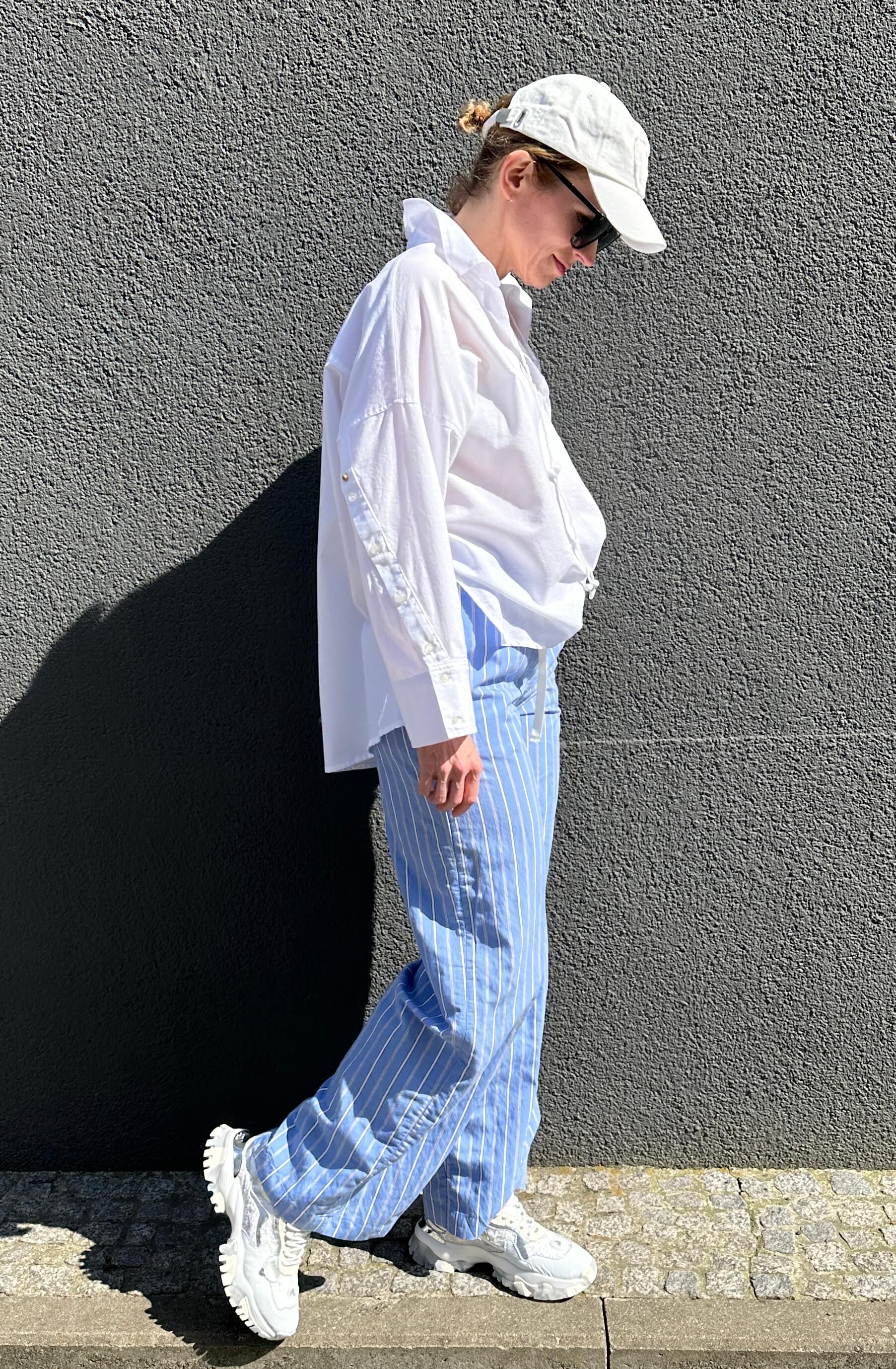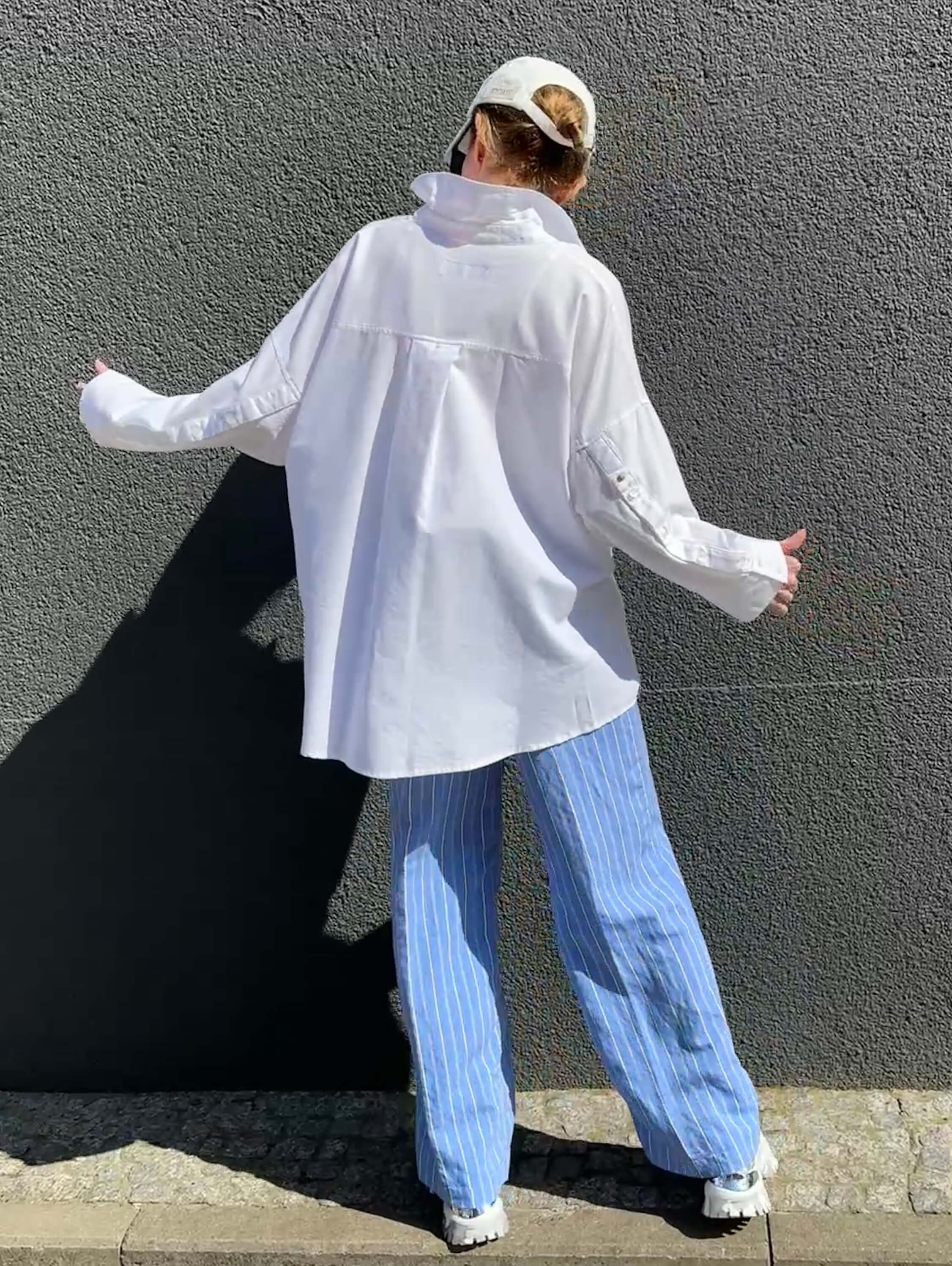 Coole oversize Bluse im Japan Style in Weiß mit schräg geknöpften Ärmel, verstellbare Brusttasche. 100% Baumwolle. Fällt groß aus.