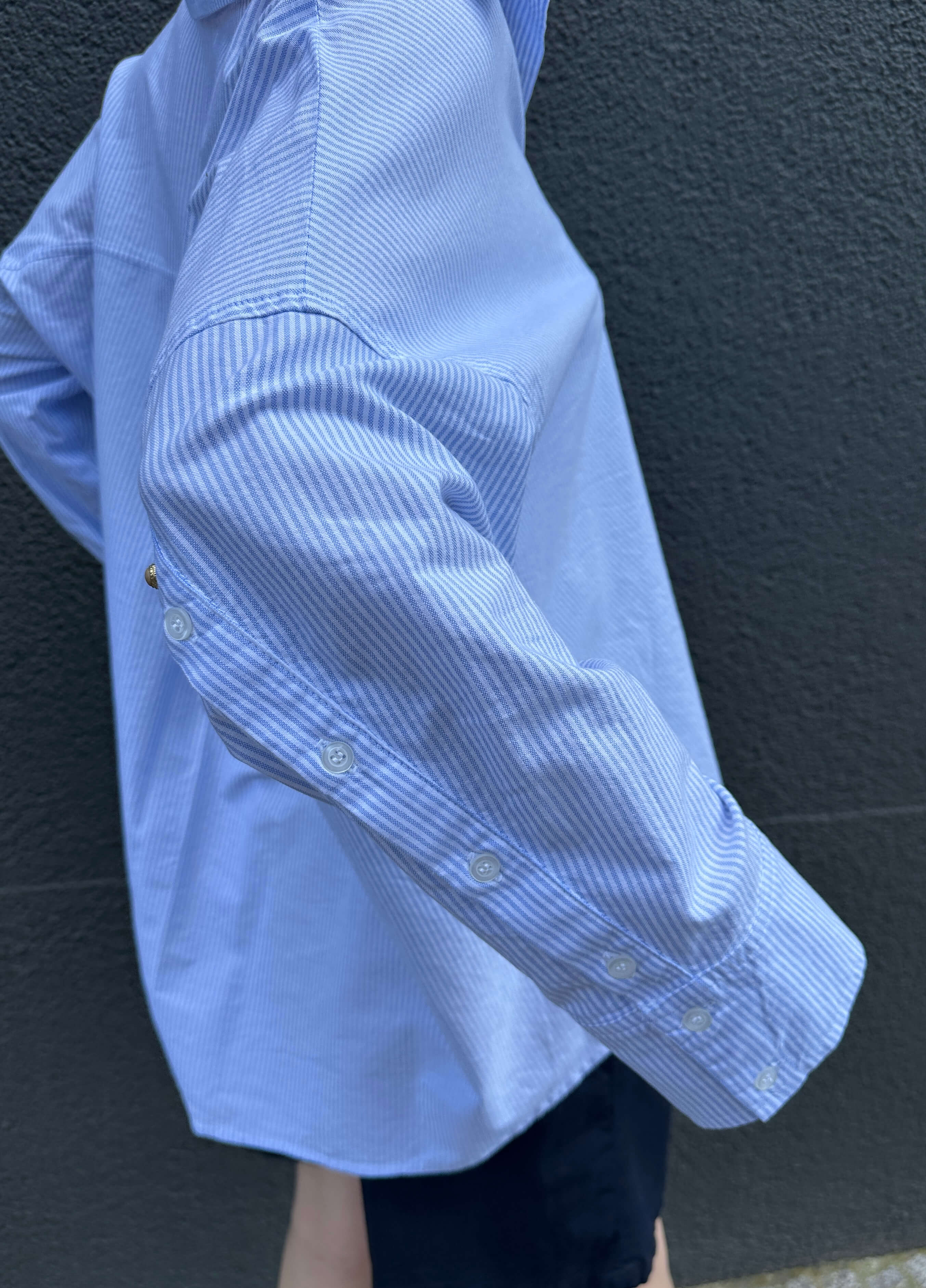 Coole oversize Bluse im Japan Style in Weiß/Blau gestreift mit schräg geknöpften Ärmel,... mehr