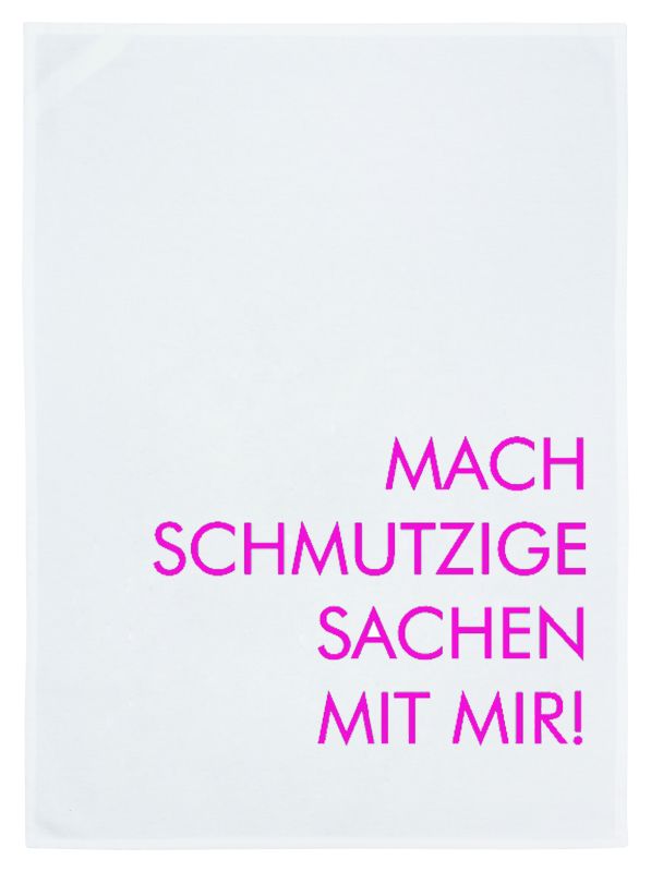 Geschirrtuch weiß, "schmutzige Sachen" in pink: