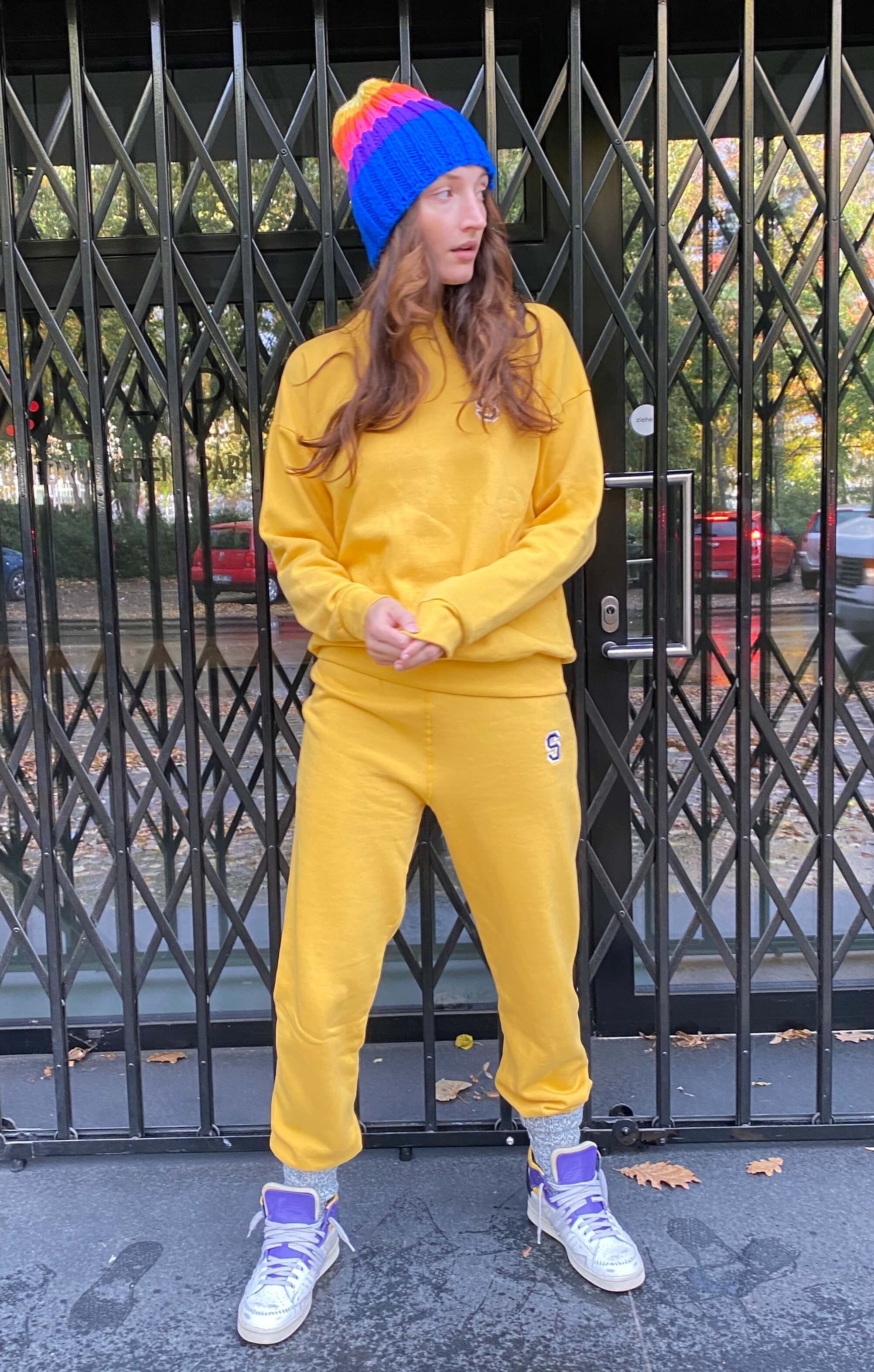 Coole Sweatpant in Curry mit Logopatch und Gummibund. 50% Polyester, 38% Baumwolle, 12% Rayon. Made in USA. Fällt größengenau aus.