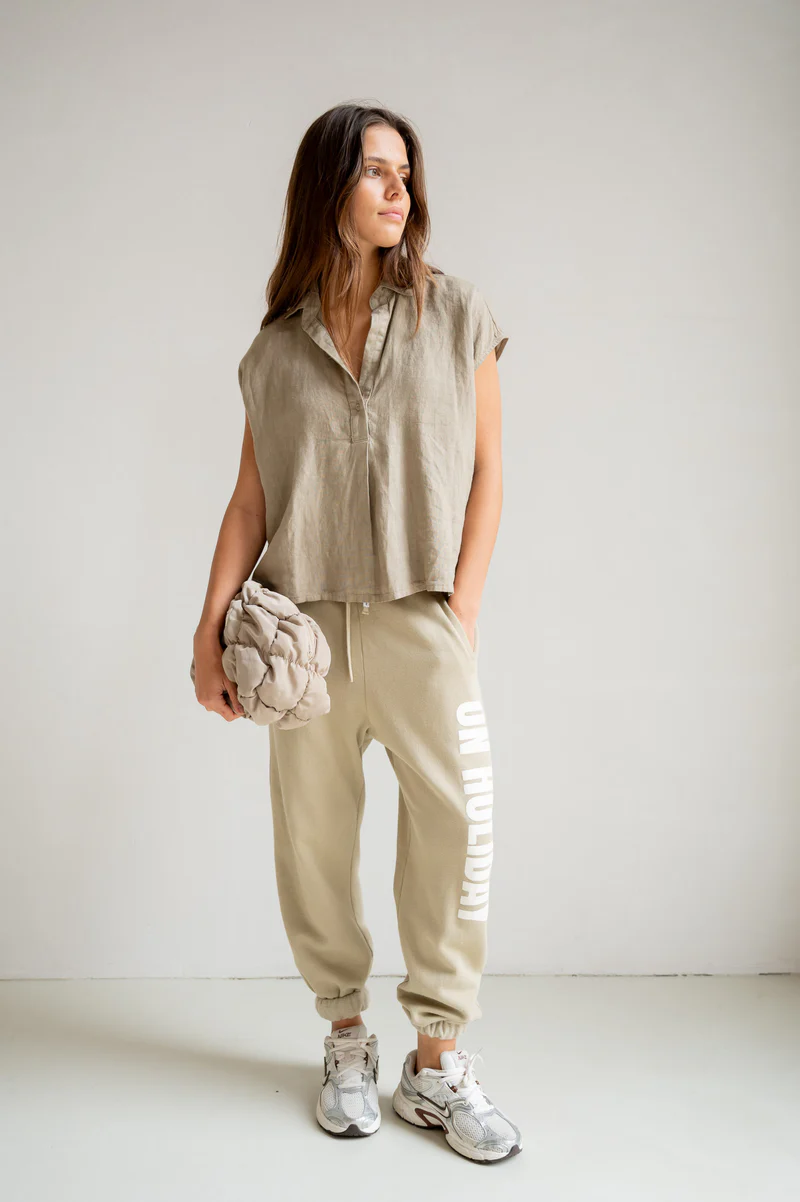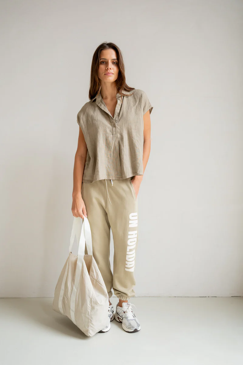 Dank der bequemen Passform, des elastischen Bundes und der Seitentaschen bietet sie ganztägigen Tragekomfort.