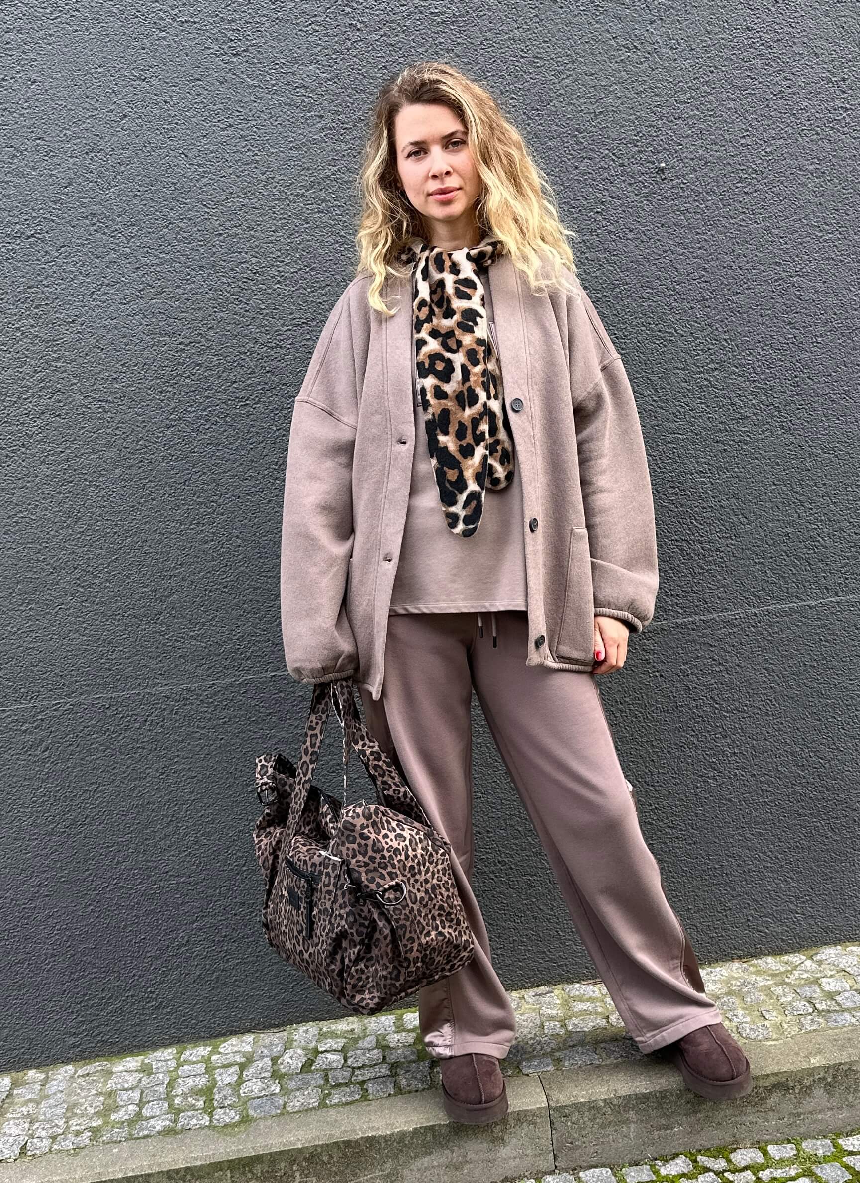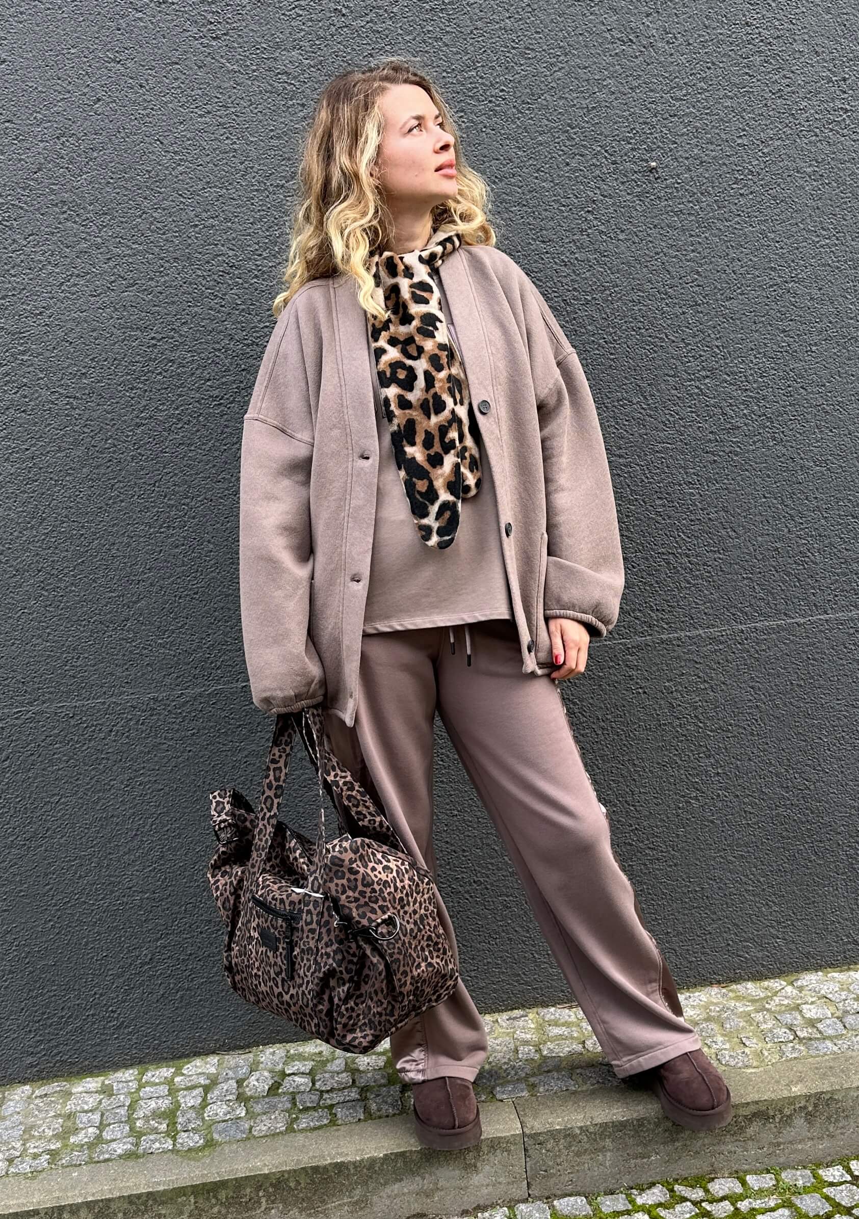 Oversized Baseballjacke aus weichem Baumwoll-Schaumfleece. Mit Knopfleiste mit 3 Knöpfen, zwei... mehr