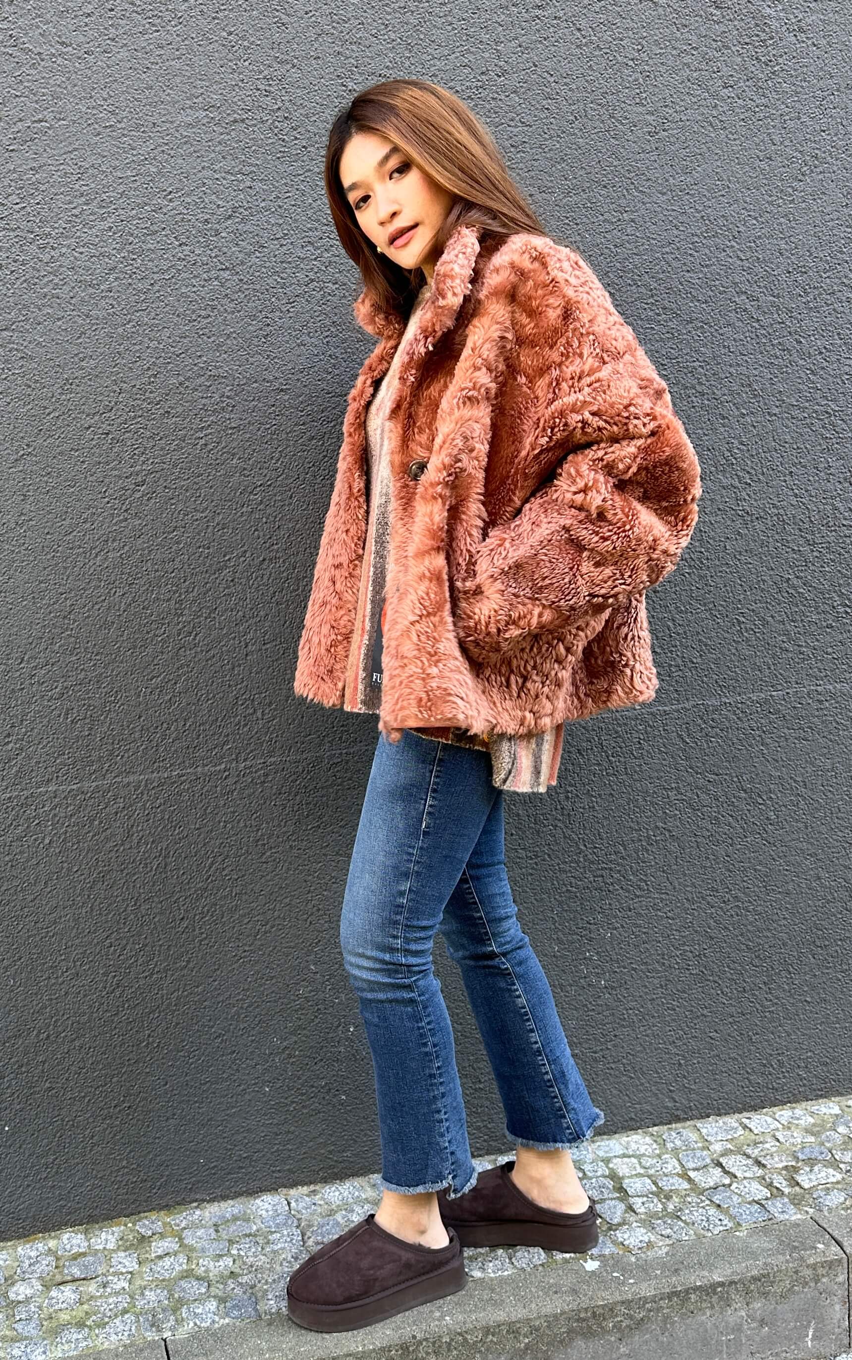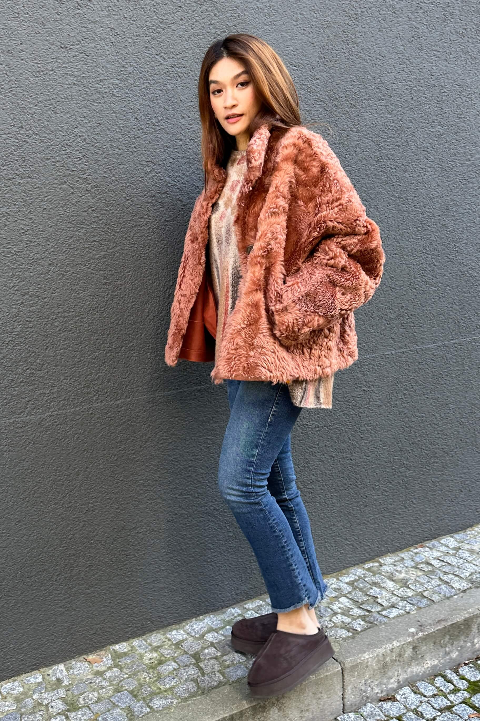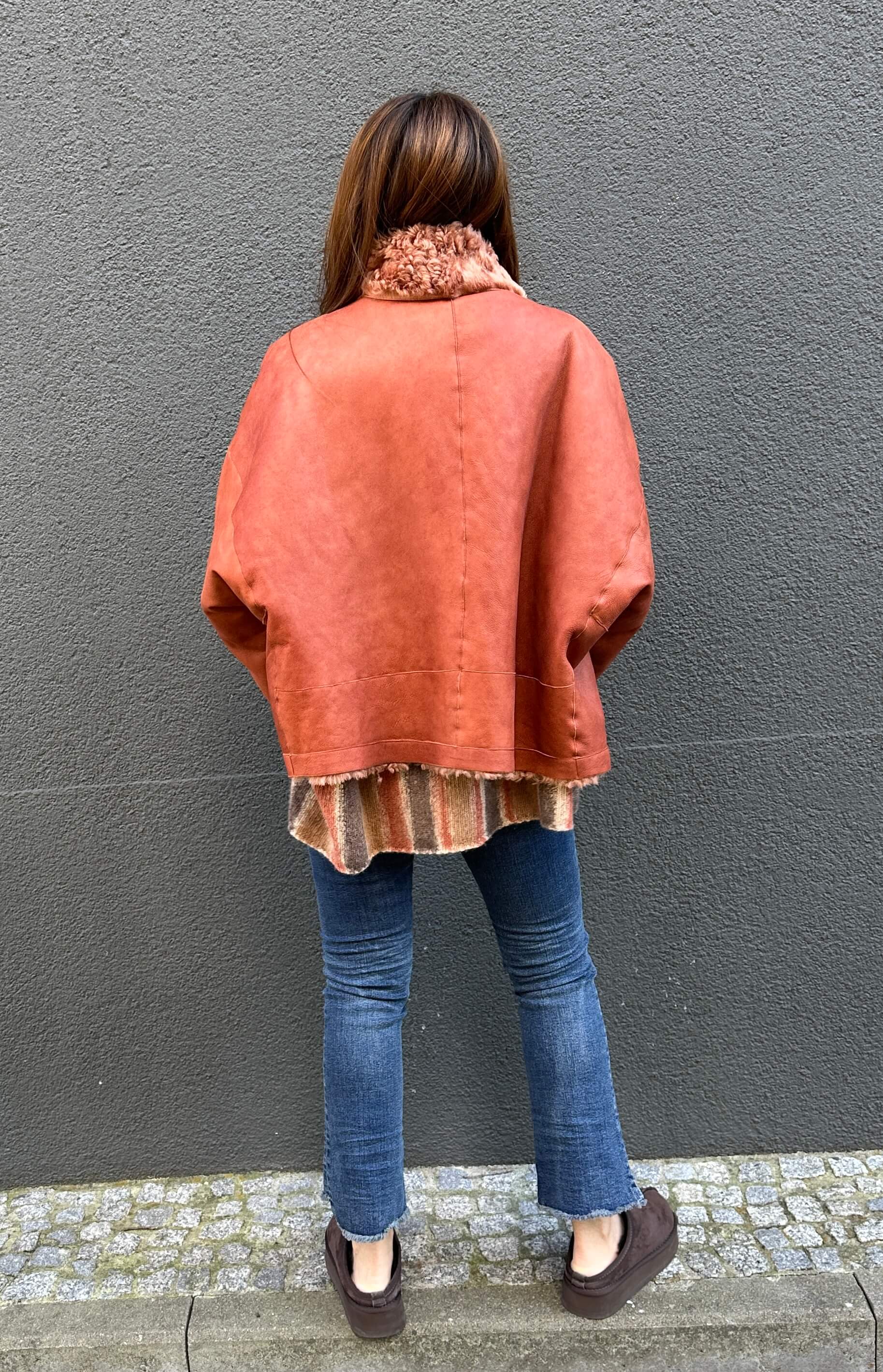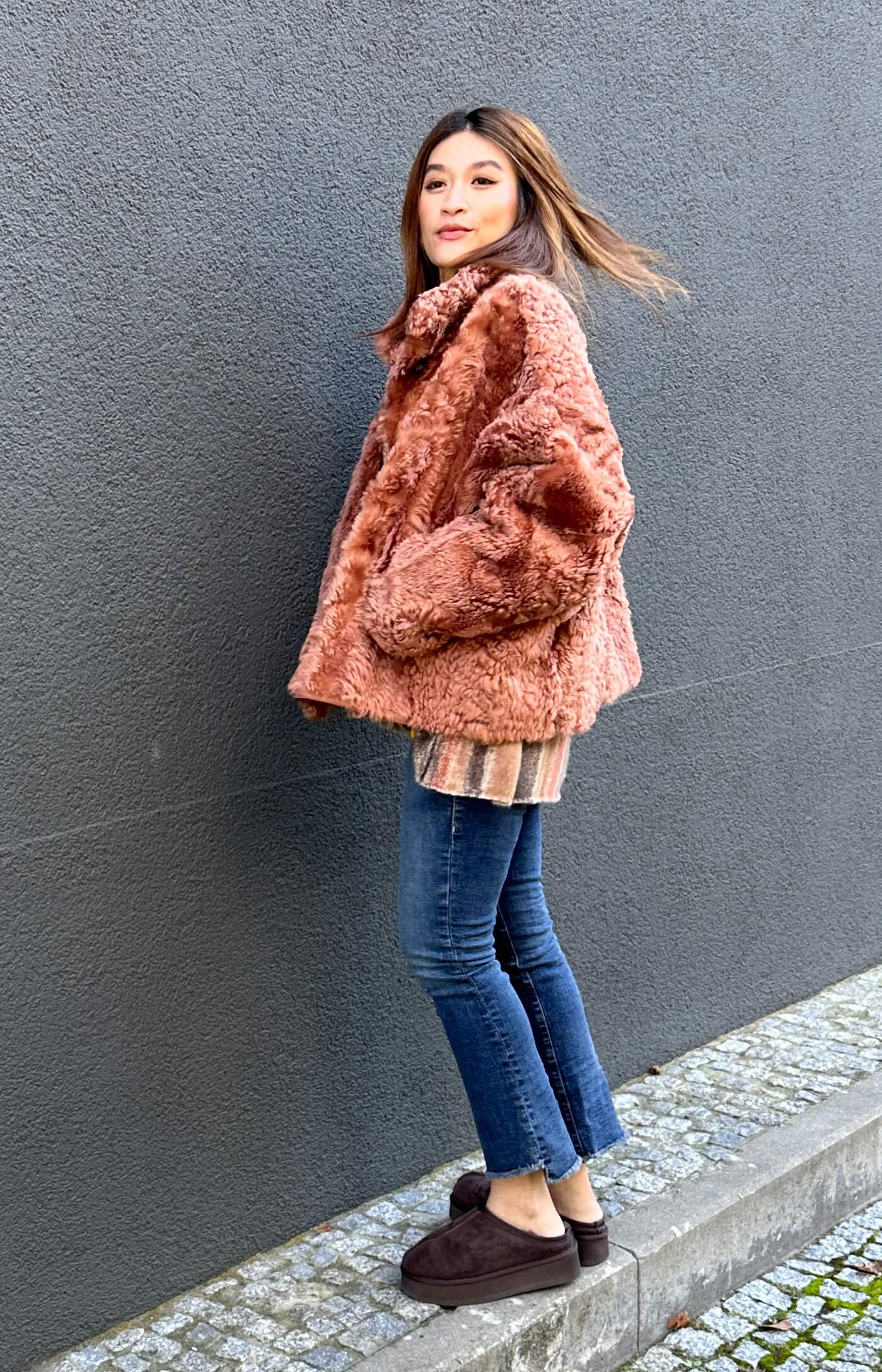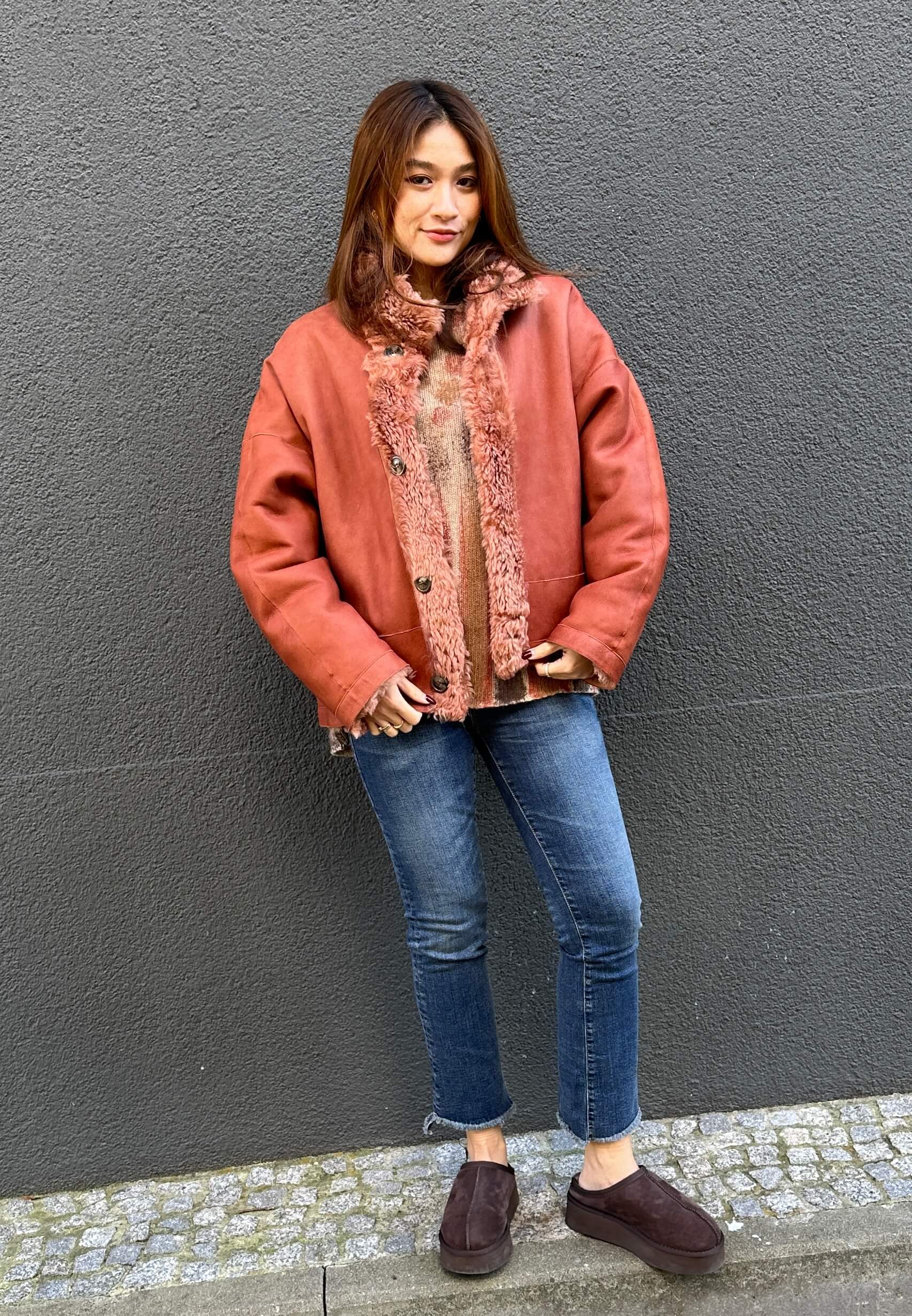 Coole Wende Lammfelljacke in Peach mit Knöpfen und seitlichen Taschen. 100% Lammfell. Made in... mehr