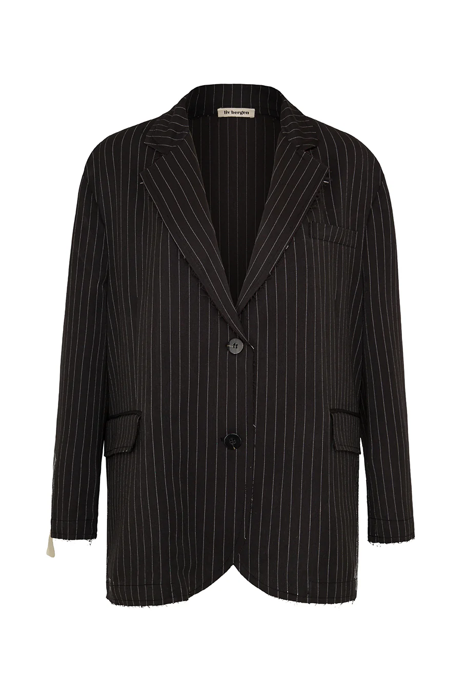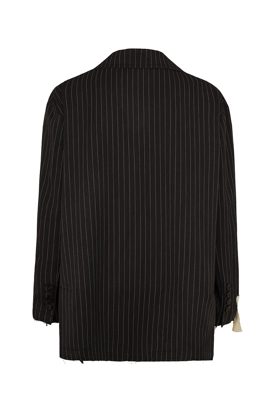 Dieser schwarze oversized Nadelstreifen-Blazer bringt mit seinen open cut-Nähten einen moderne Edge ins Spiel.