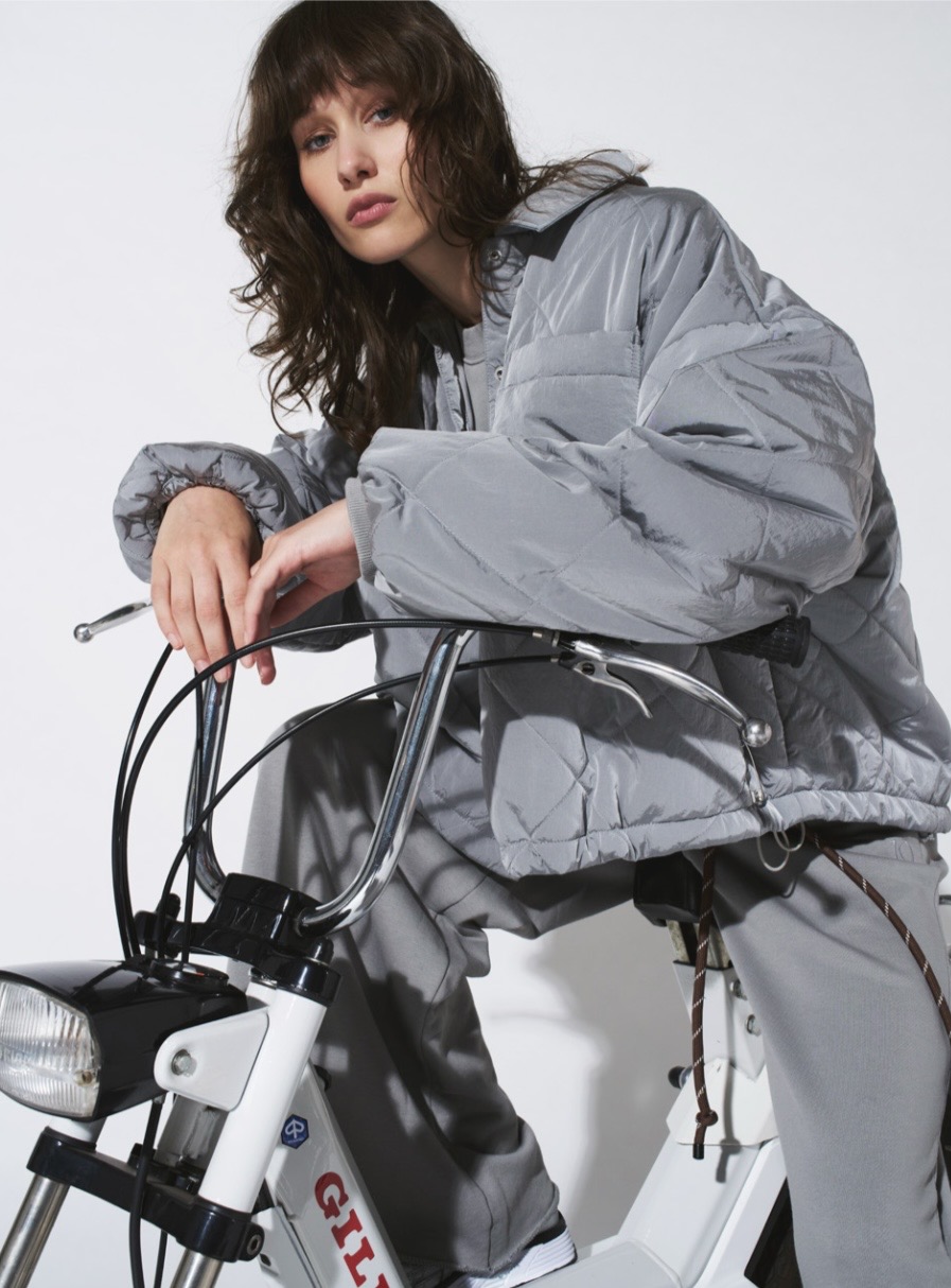 Oversized Fit Steppjacke aus leichtem Nylon. Mit einem Kragen, einem Verschluss mit Druckknöpfen, einem abgerundeten Saum,