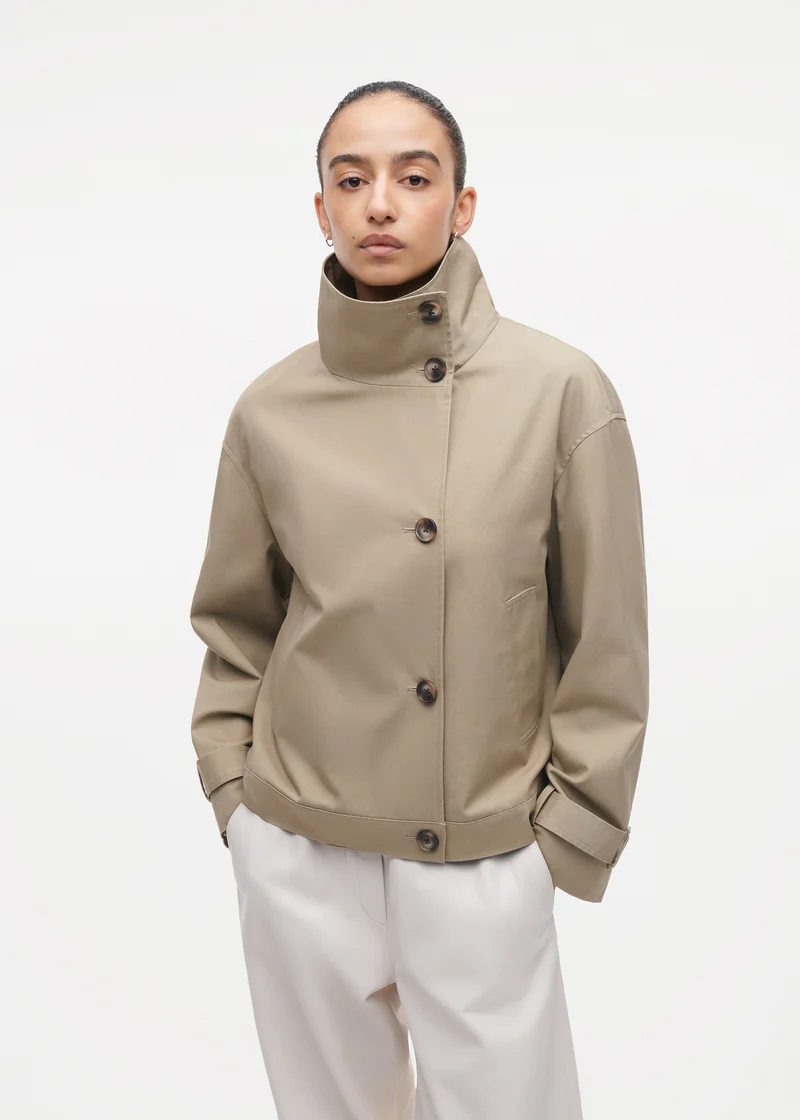 Diese Baumwolljacke mit hohem Kragen sorgt für einen markanten, trendigen Look und verleiht jedem Outfit sofort das gewisse Etwas.