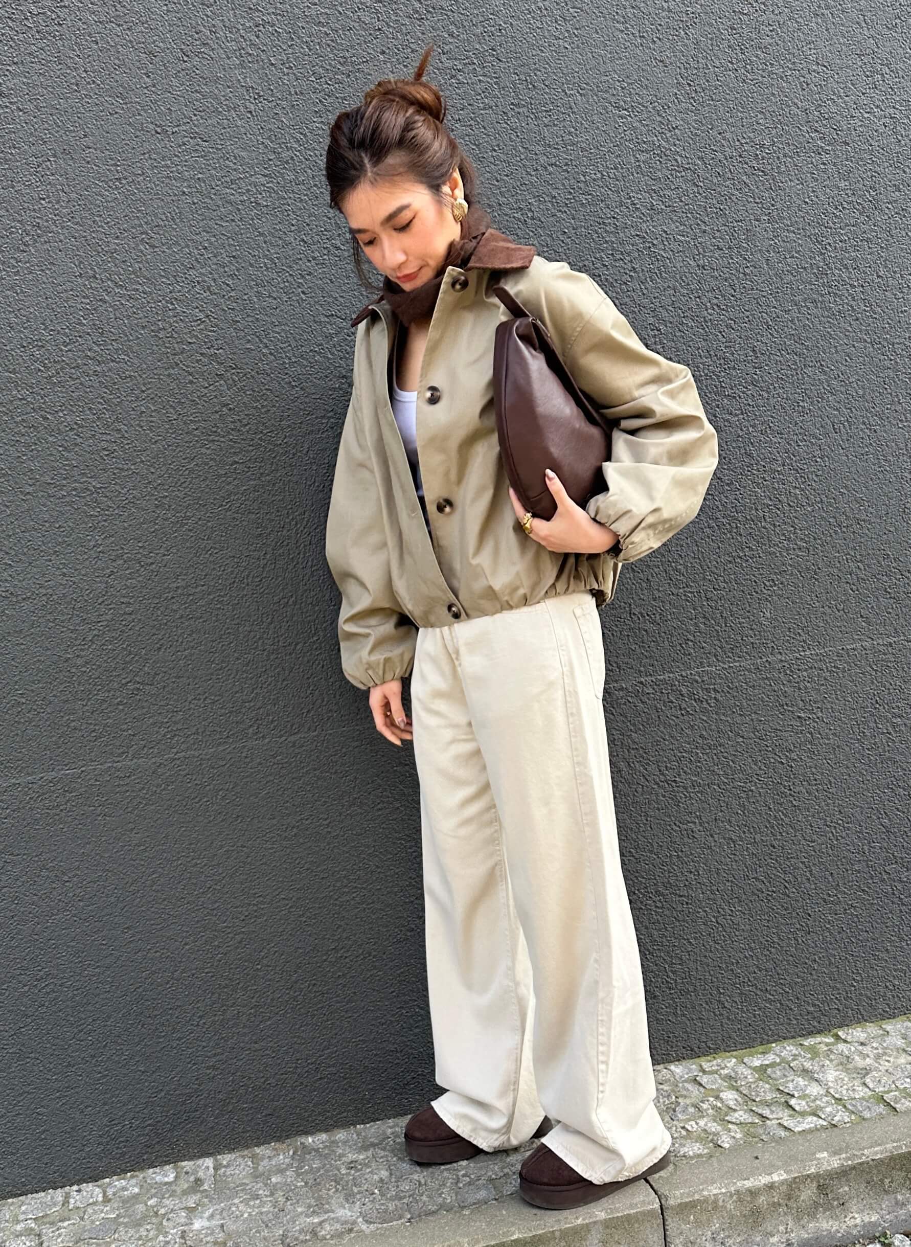 moderne Passform mit einem wunderschön detaillierten Stoffkragen und verleiht dem klassischen Bomberjacken-Stil einen gehobeneren Look.