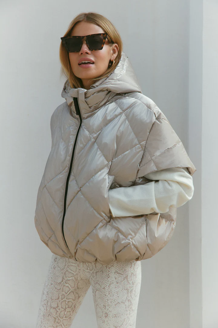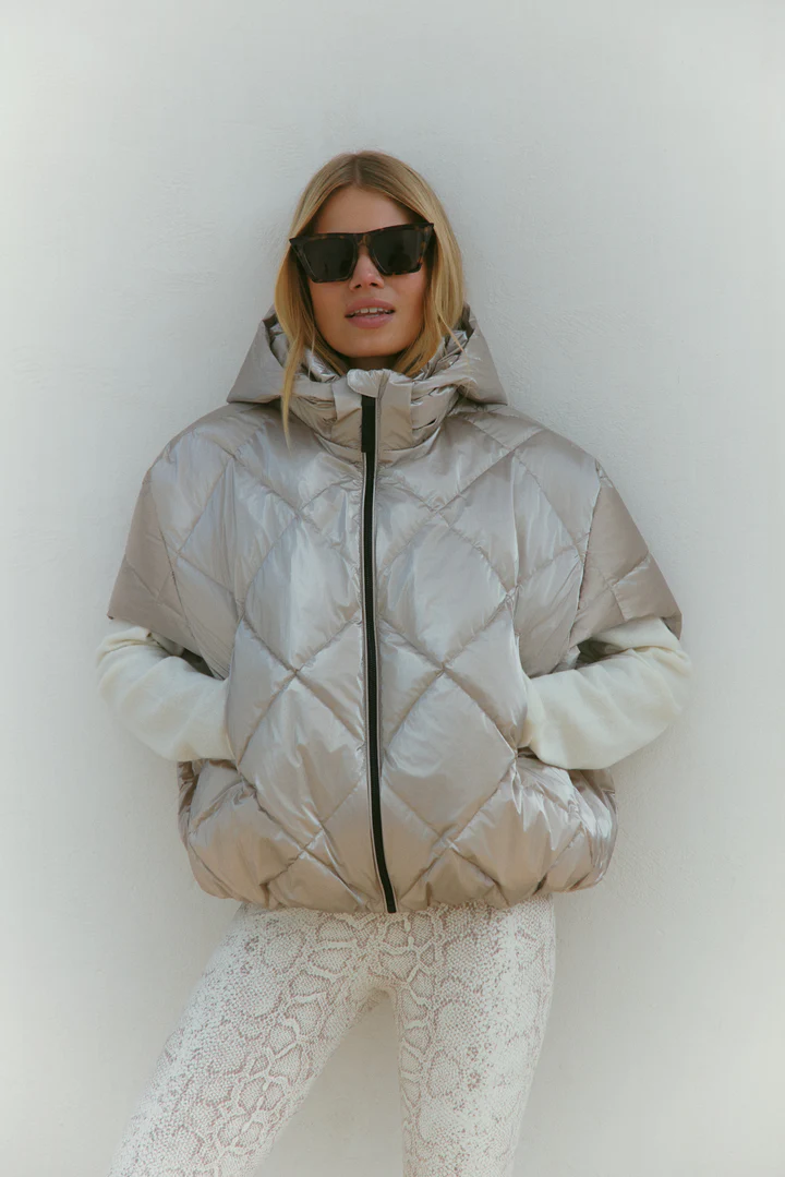 Hergestellt aus leichtem Funktionsmaterial mit glänzendem Schimmer. Winddicht und wasserabweisend, mit isolierender Wattierung und klassischer Rautensteppung.