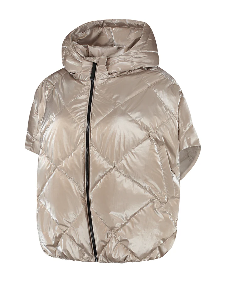 Er hat kurze Ärmel für müheloses Layering, ist aus leichtem Funktionsmaterial gefertigt, großzügig isoliert und hat eine abnehmbare Kapuze.