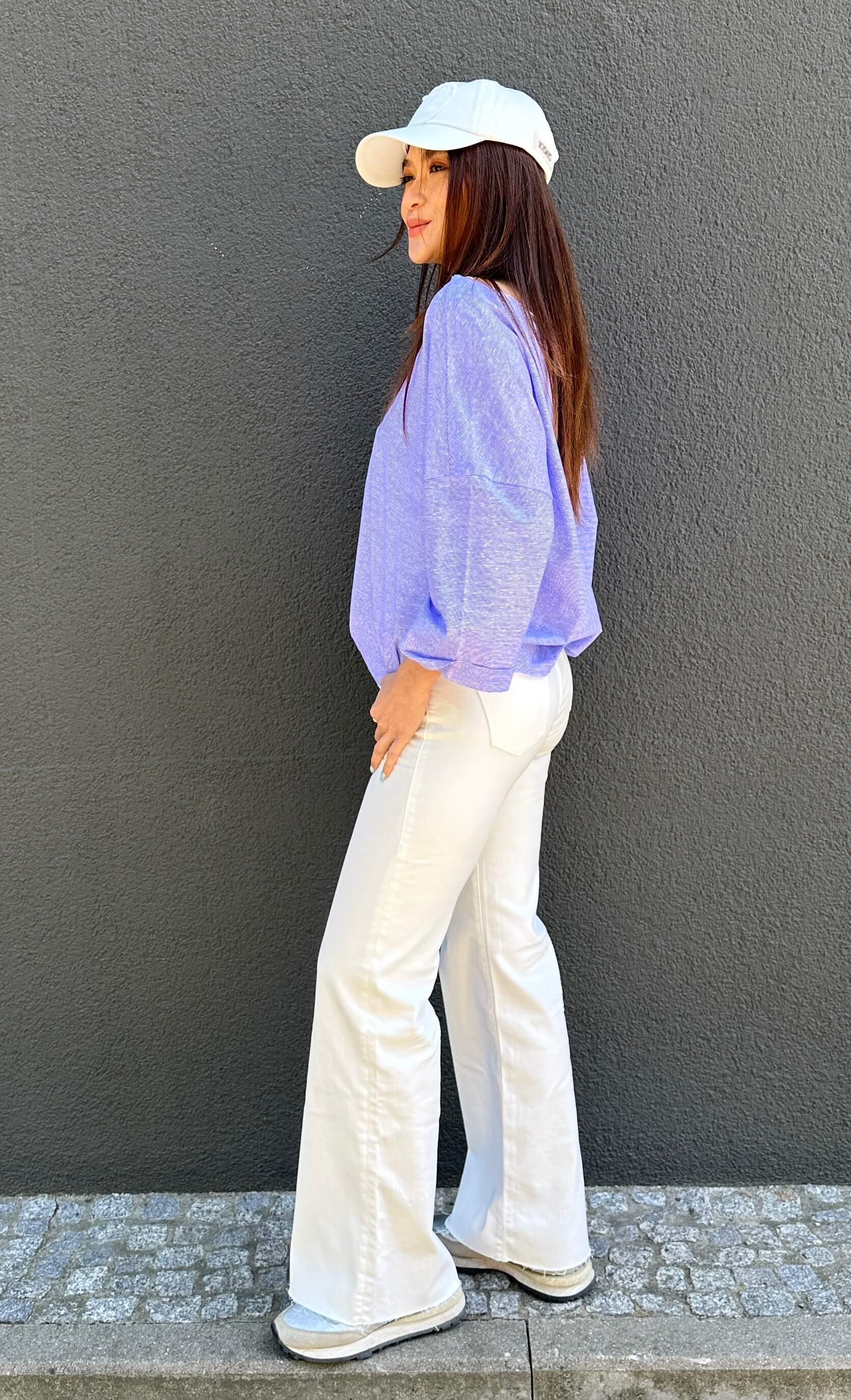 Coole Flared Leg Jeans in Weiß mit ausgefranstem Saum, mitttlere Leibhöhe. 67% Baumwolle, 27% Lyocell, 4% Elastomultieser, 2% Elastan. Fällt größengenau aus.