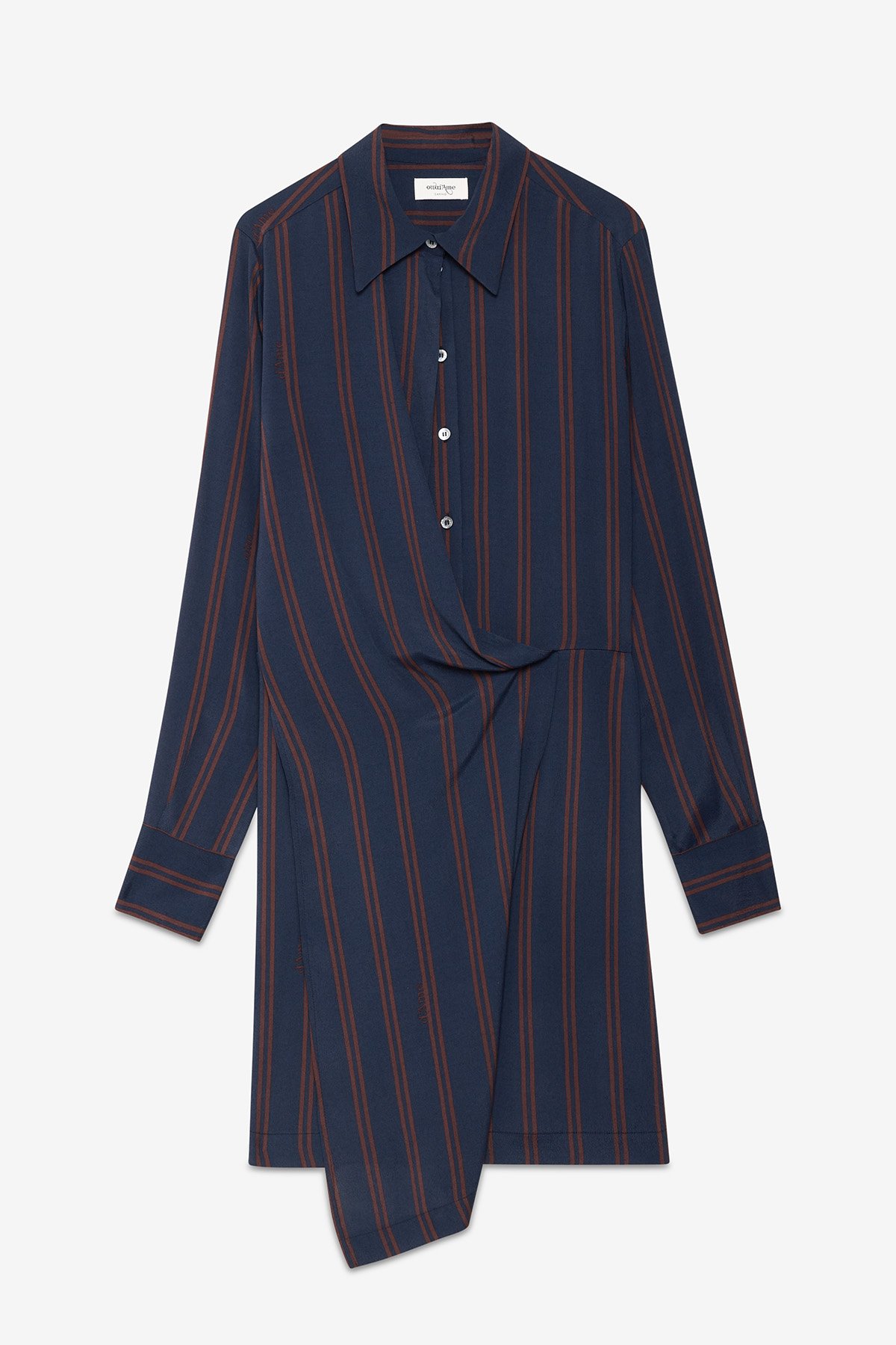 Kurzes Kleid aus reiner, bedruckter Viskose mit rückseitigem Kordelzug und asymmetrischem Saum.