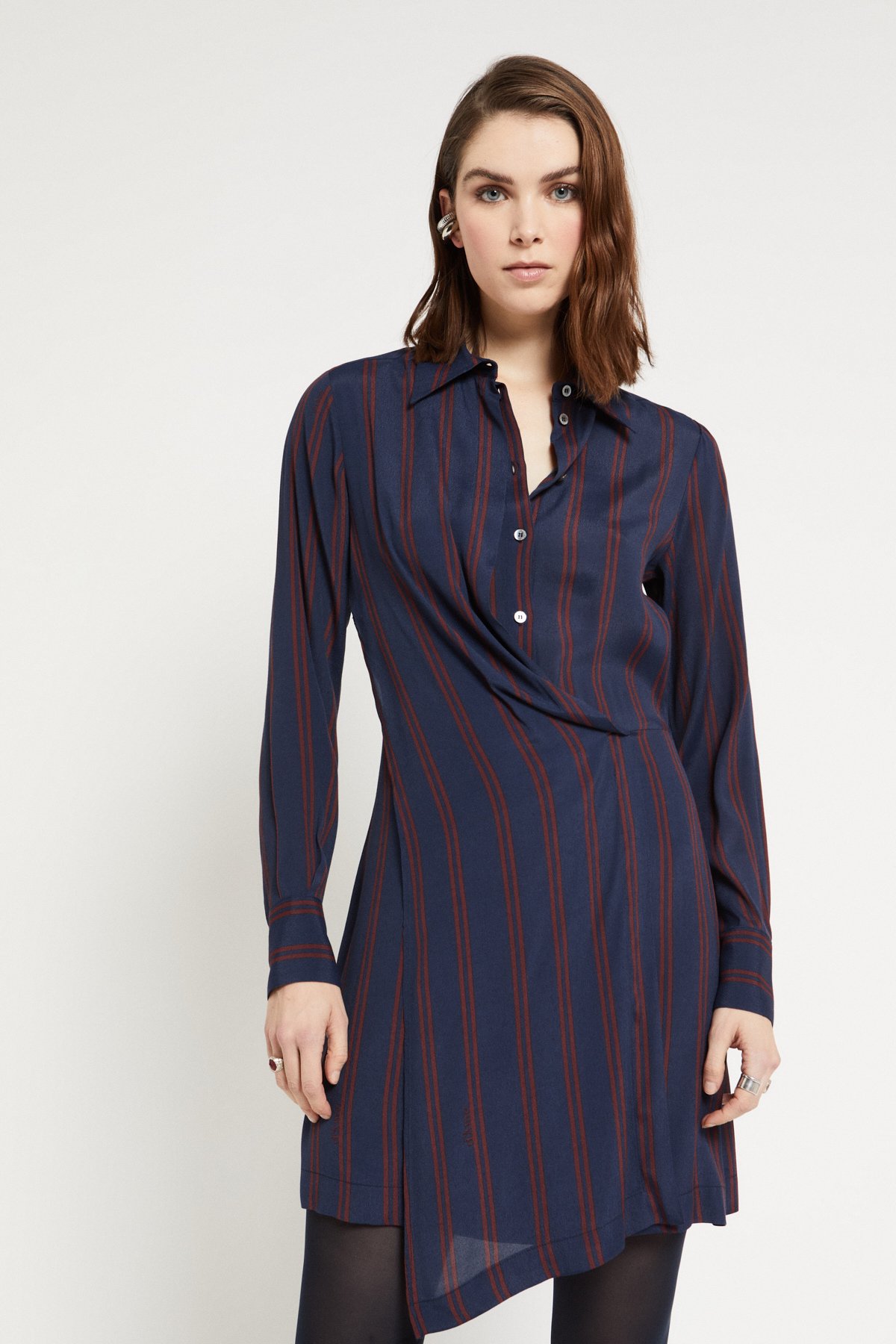 Kurzes Kleid aus reiner, bedruckter Viskose mit rückseitigem Kordelzug und asymmetrischem Saum.... mehr