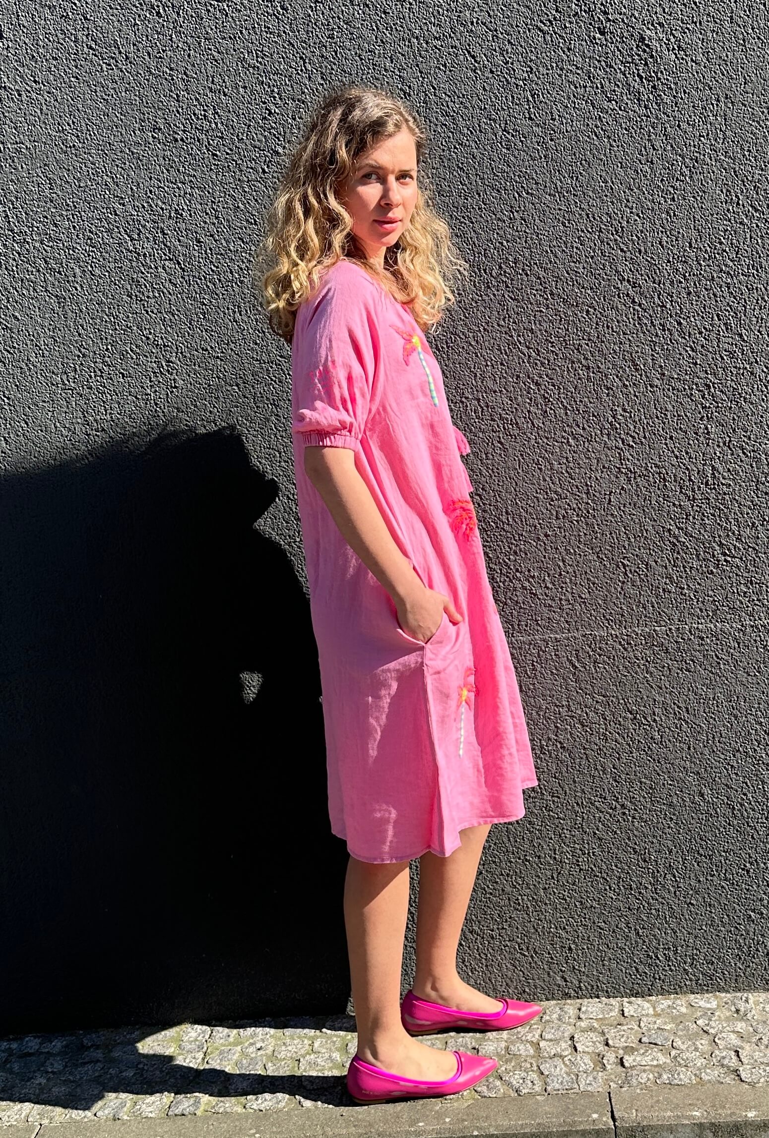 Produktinformationen "Leinenkleid Palmtrees rose"