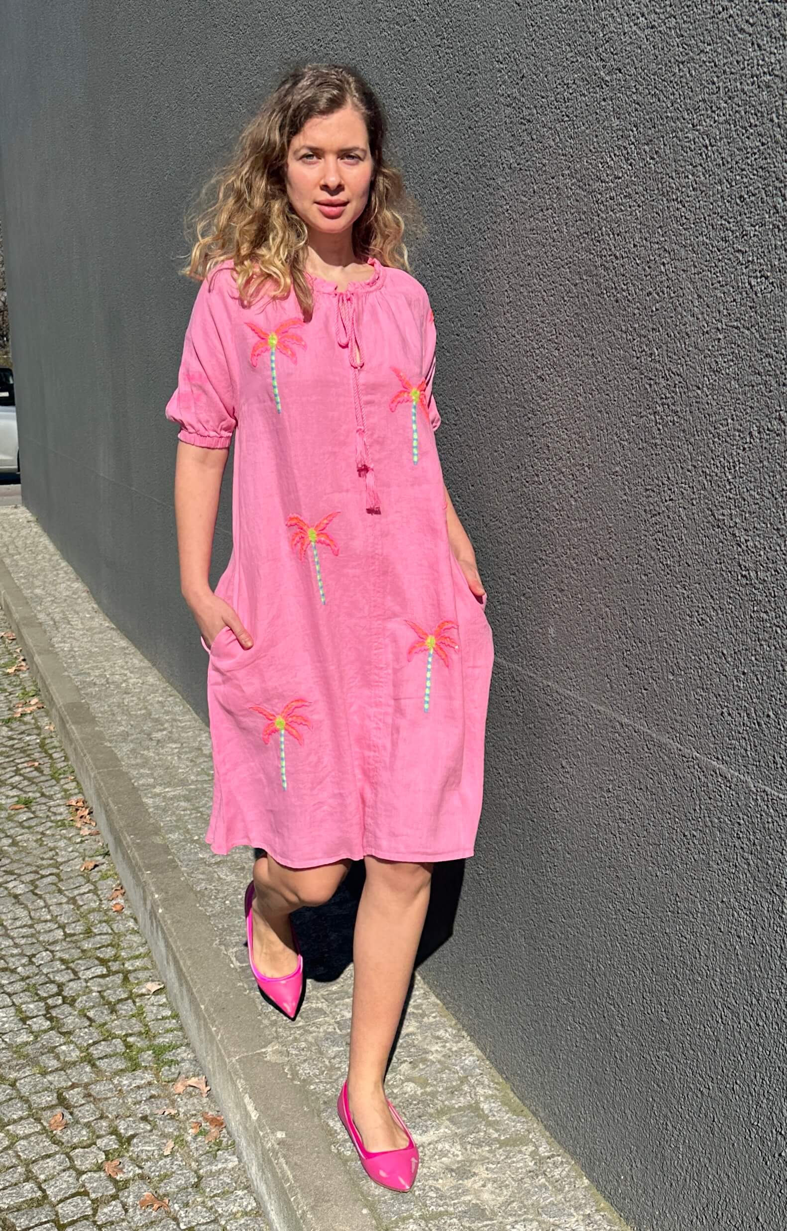 Leinenkleid Palmtrees rose