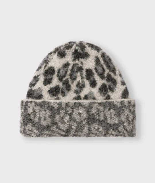 Knit Beanie Leopard soft white melee