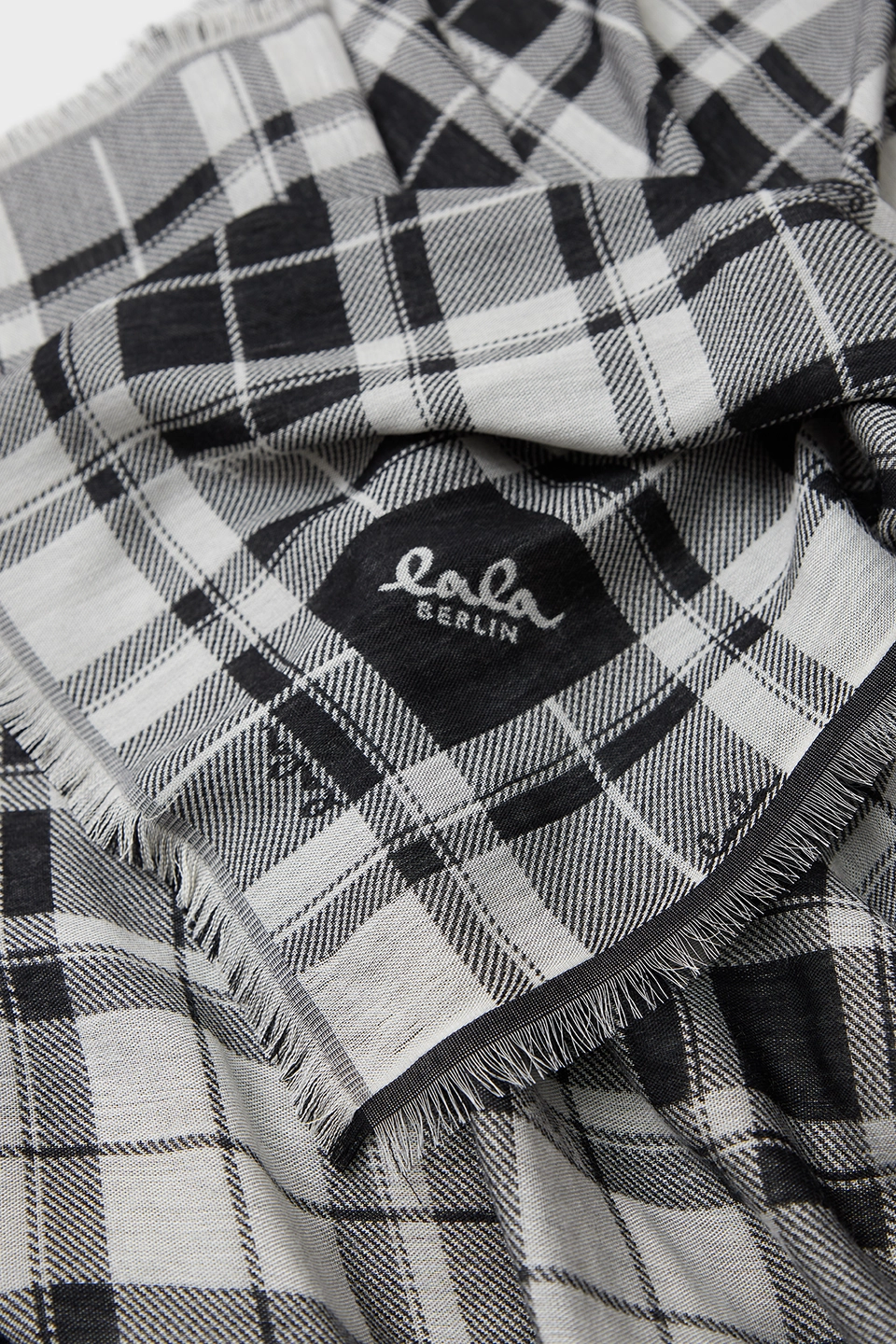 Unser kariertes Tuch verbindet soften Griff mit markantem Look. Entworfen in Berlin, zeigt es sich im zeitlosen Schwarz-Weiß-Karo