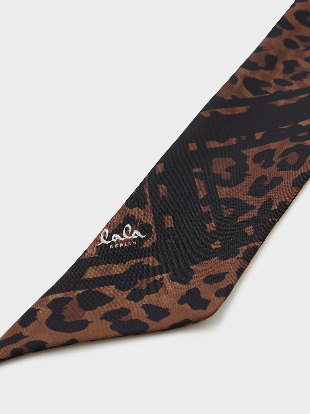 Unser Twilly Tao ist ein schmales Tuch aus 100% Seide, das mit unserem Leo Print versehen ist.