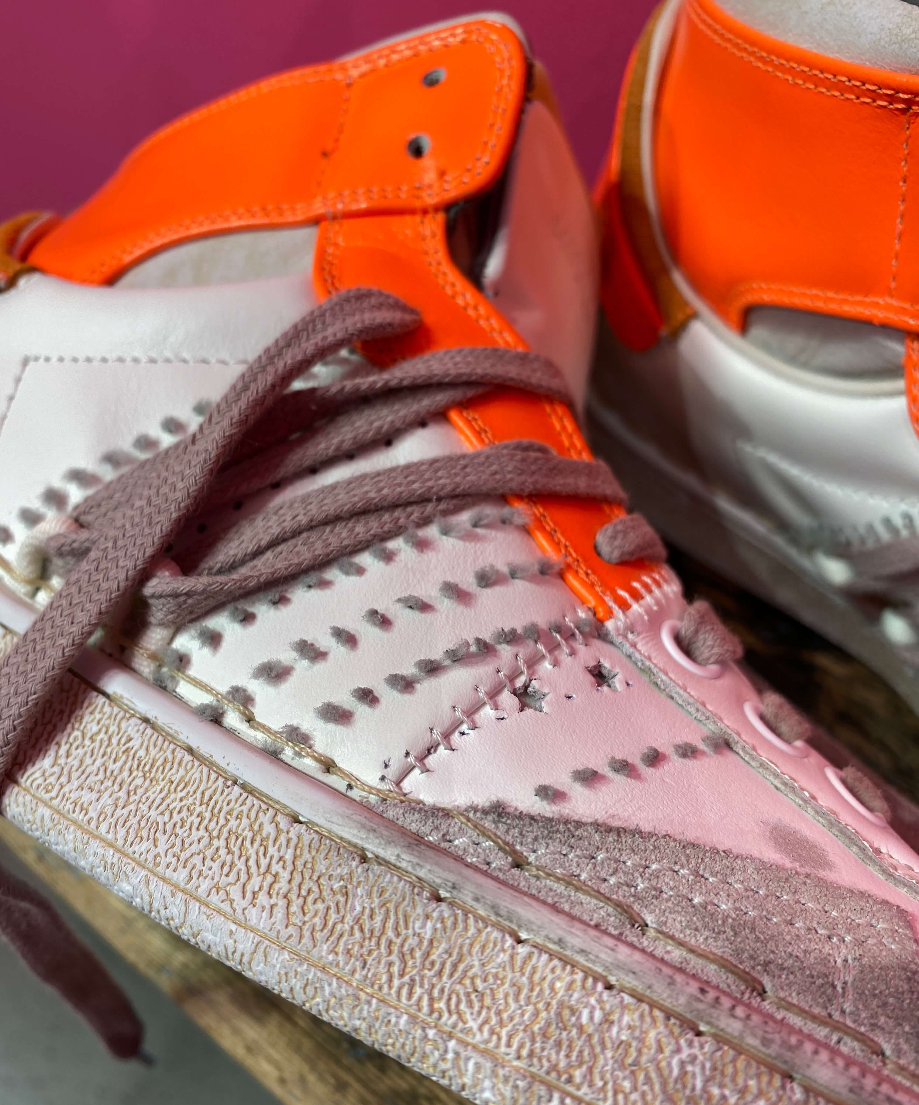 Premium High Sneaker The Cage in White/Fluo Orange im Used Look mit Kontrastnähten und... mehr
