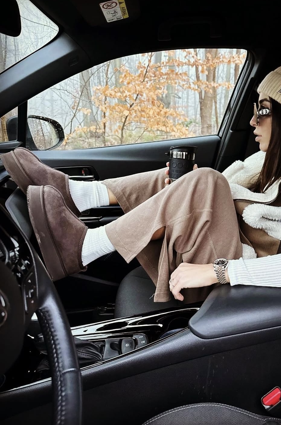 Coole Plateau Boots in Coffee mit echtem Lammfellfutter, die Boots bieten keinen Halt! 100% Lammfell, Plateau Sohle Gummi. Fallen größengenau aus.
