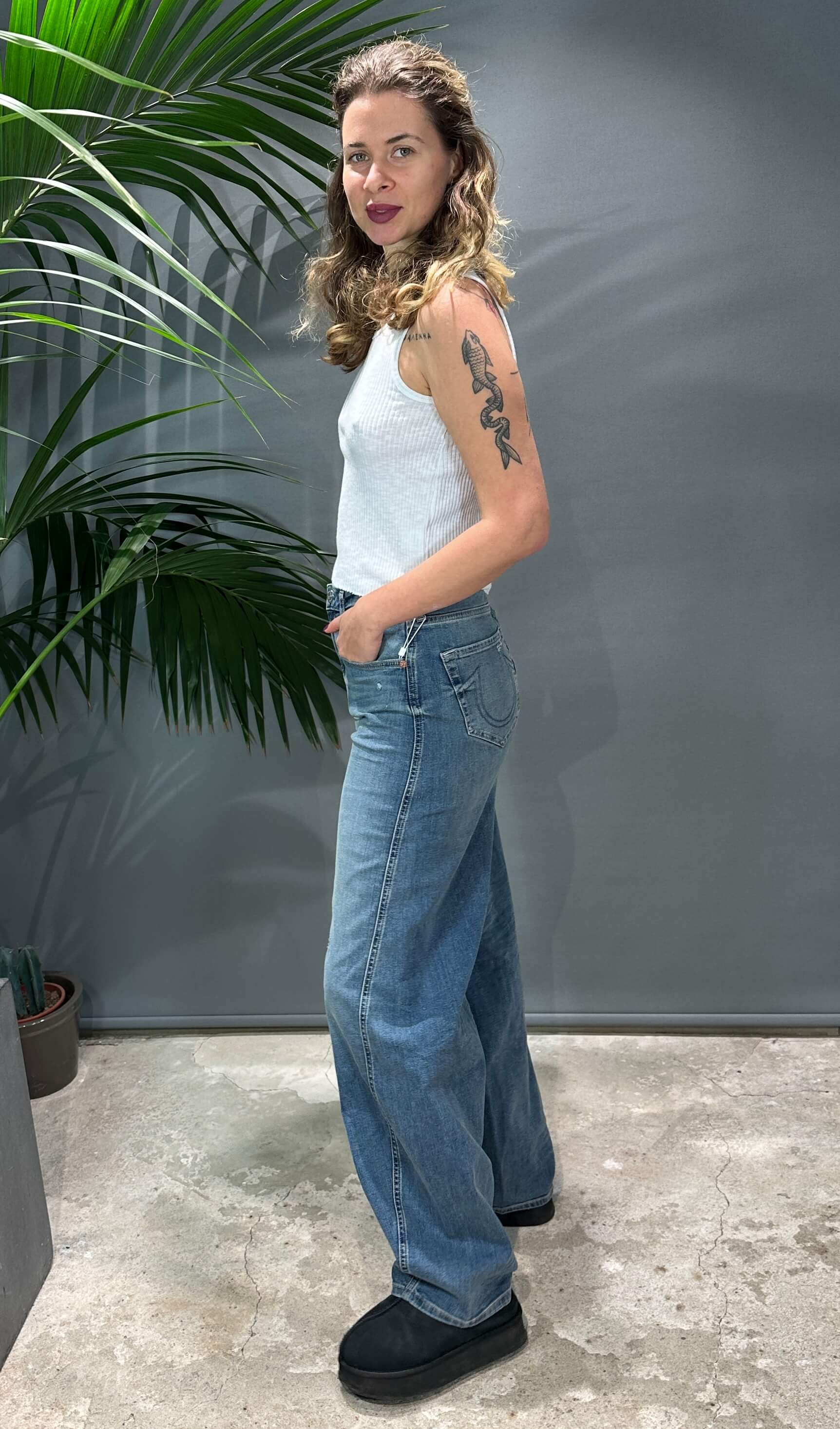 Cropped Rib Tank Top in Weiß mit offenen Kanten. 56% Baumwolle, 38% Modal, 6% Elastan. Fällt größengenau aus.