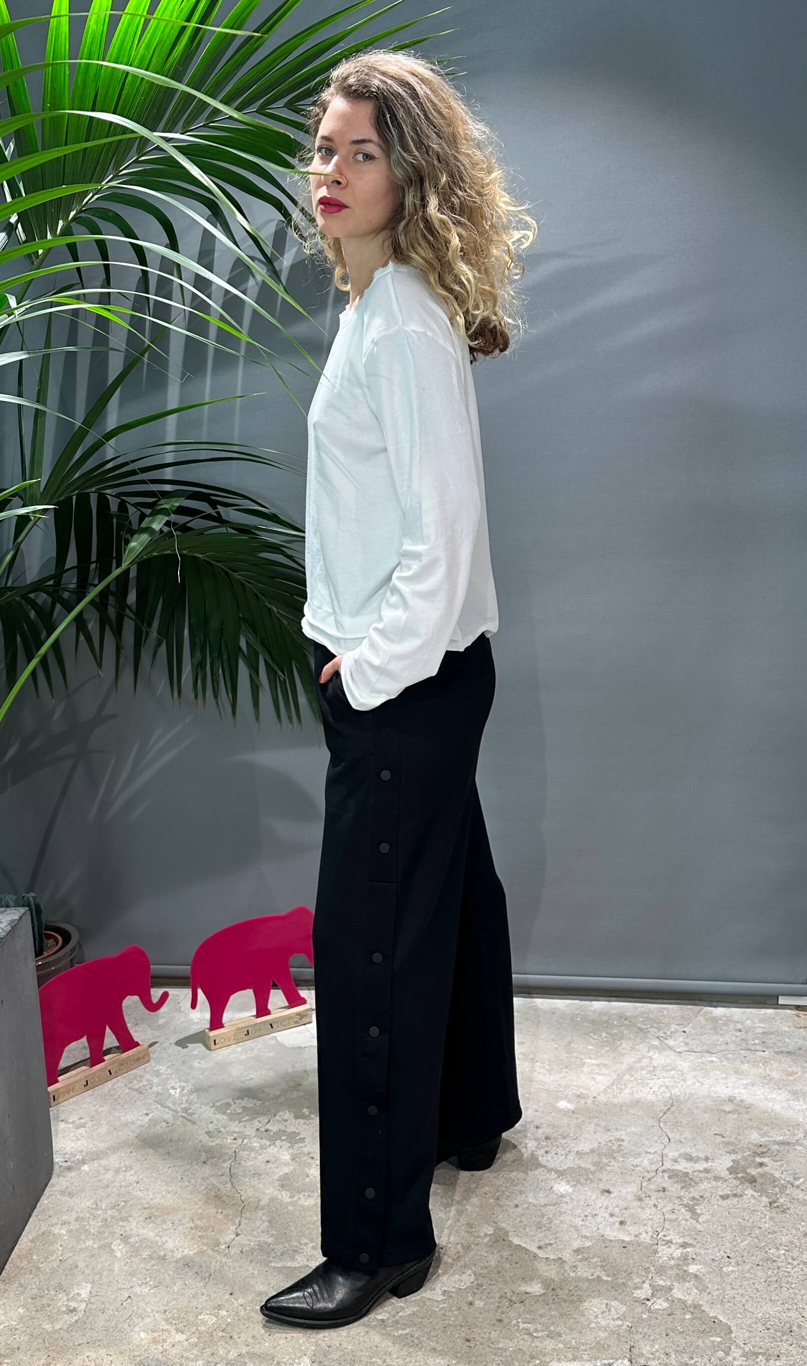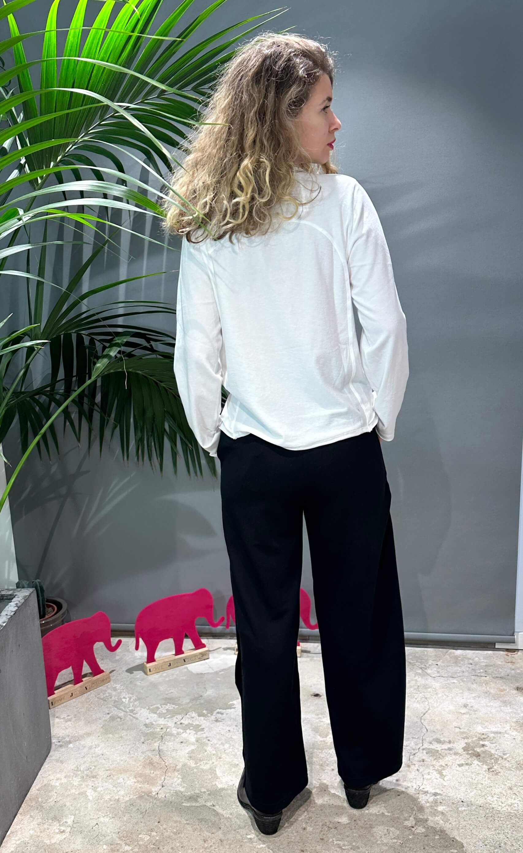 - Kleiner Elefant-Stickerei auf der rechten Rückseite