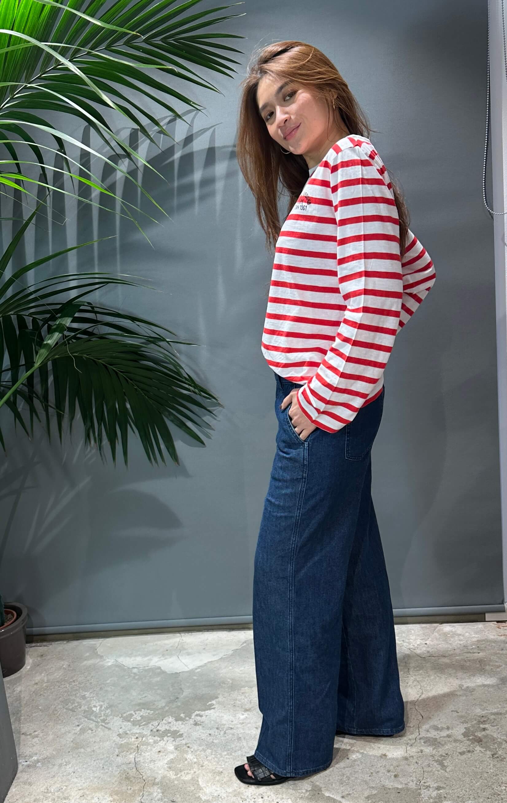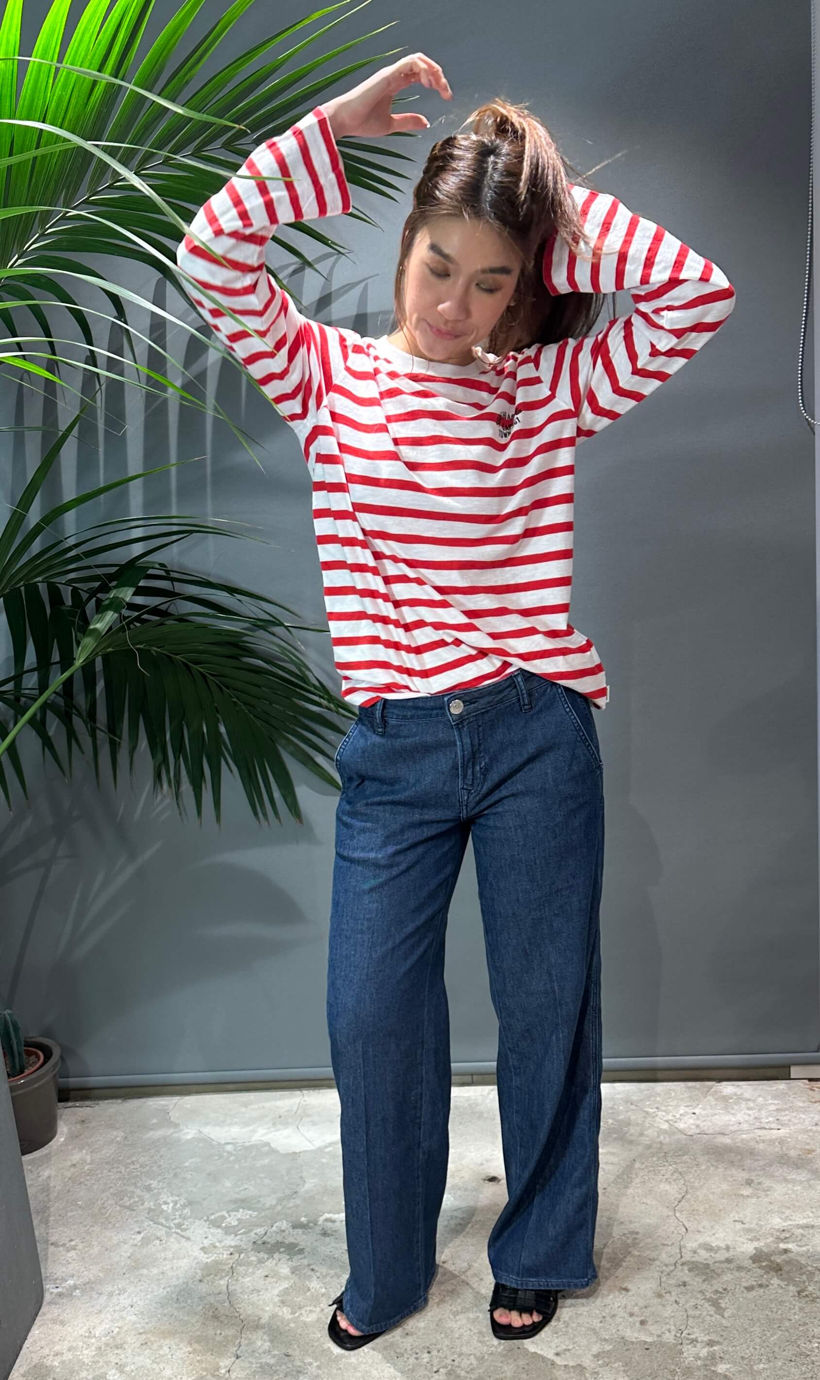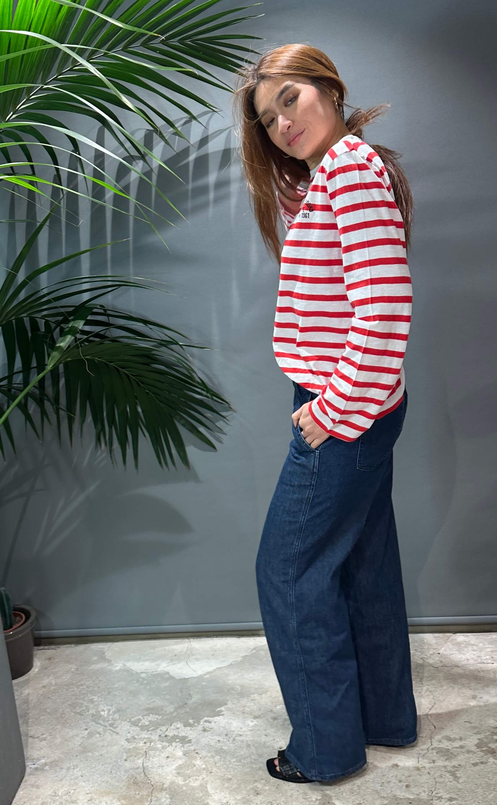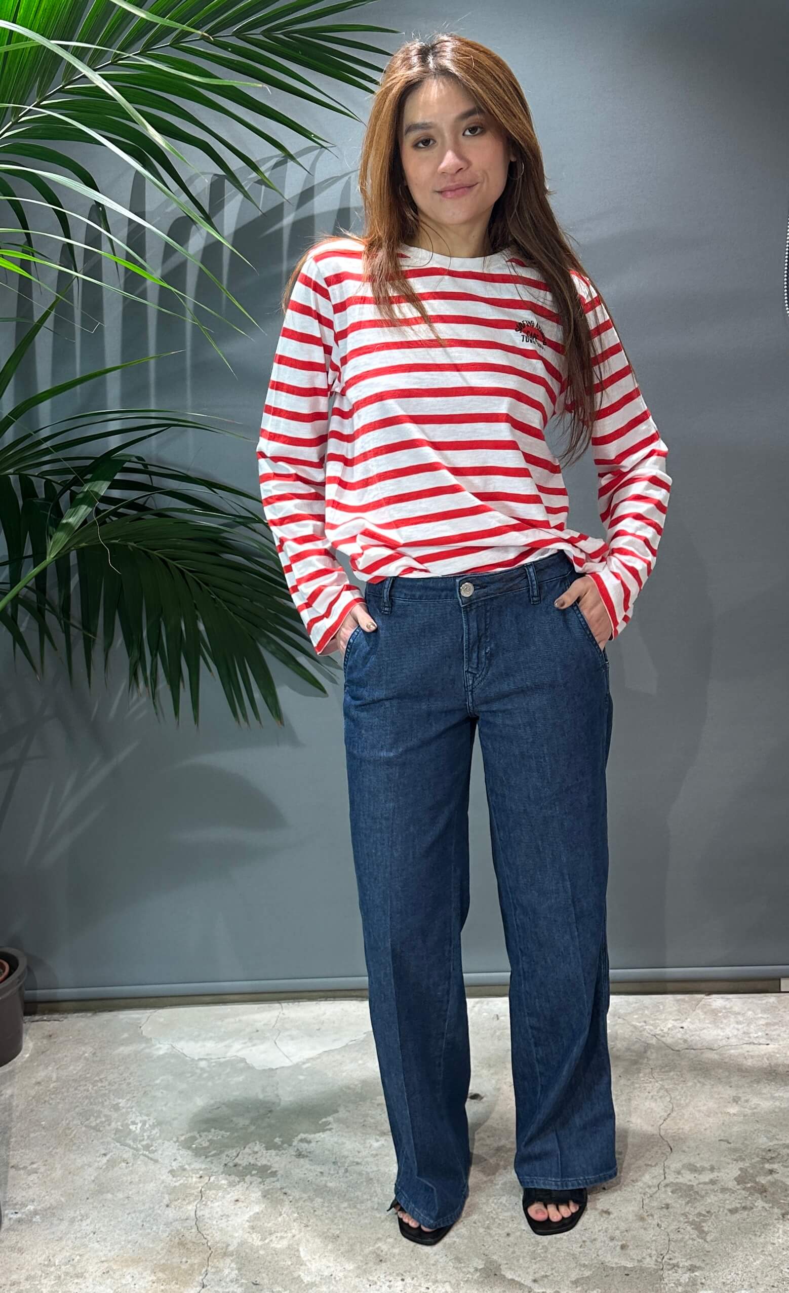 Dieses gestreifte Langarmshirt mit dezentem Brustprint sorgt für einen modernen, unaufdringlichen Look.