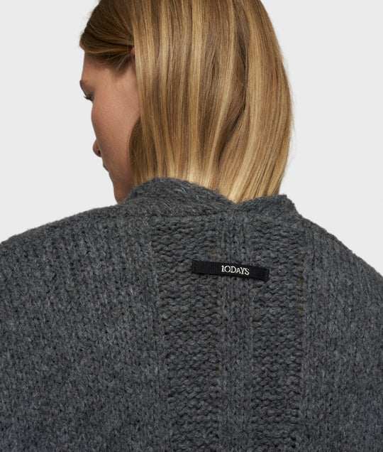 Relaxed Fit Maxistrickjacke aus einem weichen Wollmix. Mit Rippenstrickbündchen, Eingrifftaschen, tiefem Schultereinsatz und einem „10DAYS“-Label auf dem Rücken.