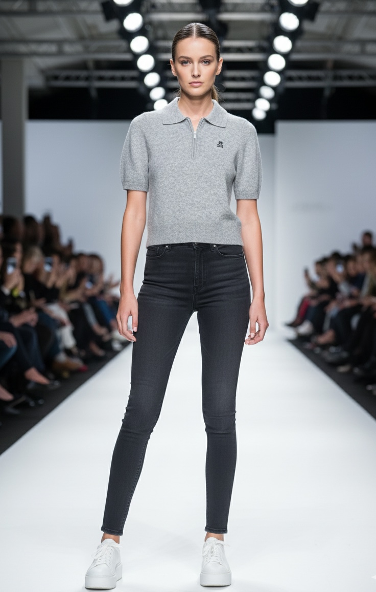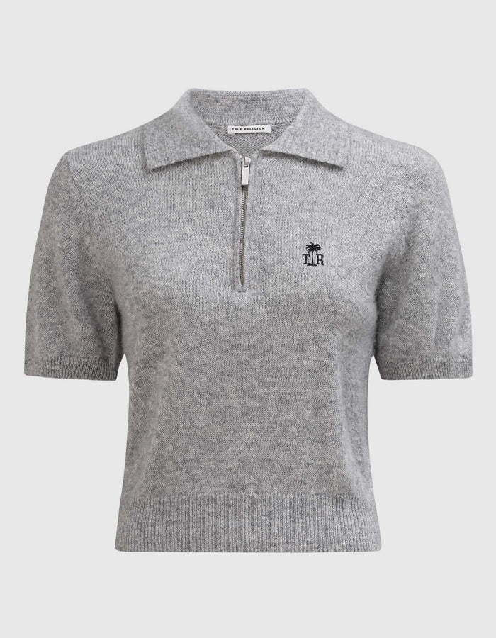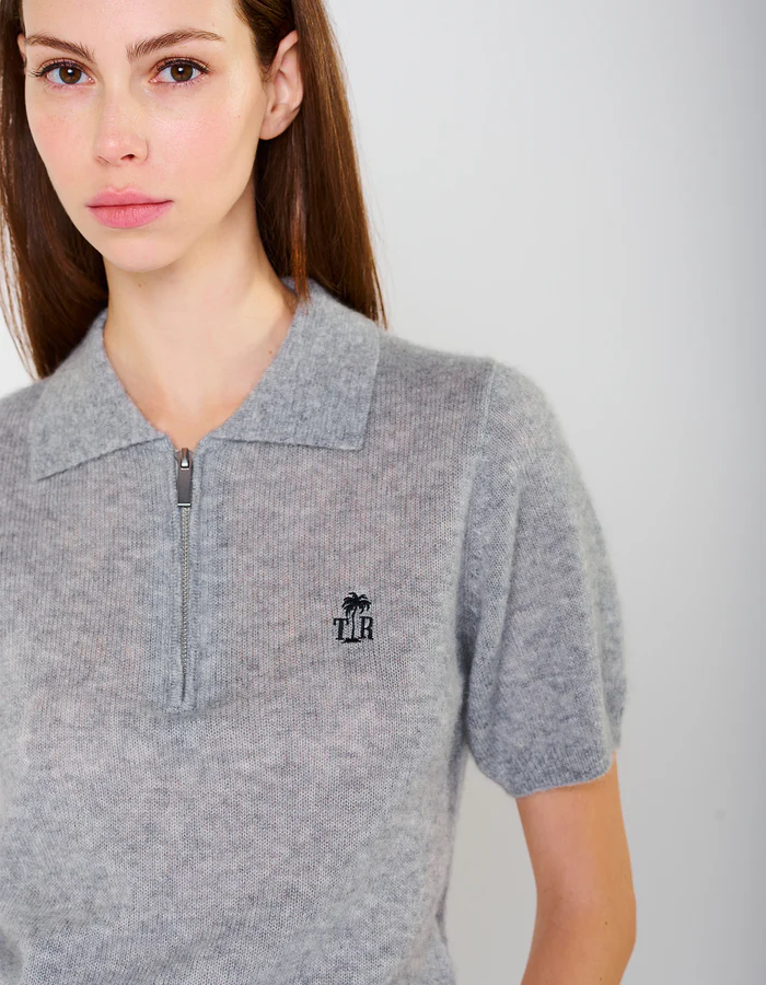 Edles Feinstrickpoloshirt mit kurzem Zip und Palmenstitching. 75% Cashmere, 25% Seide. Fällt größengenau aus.