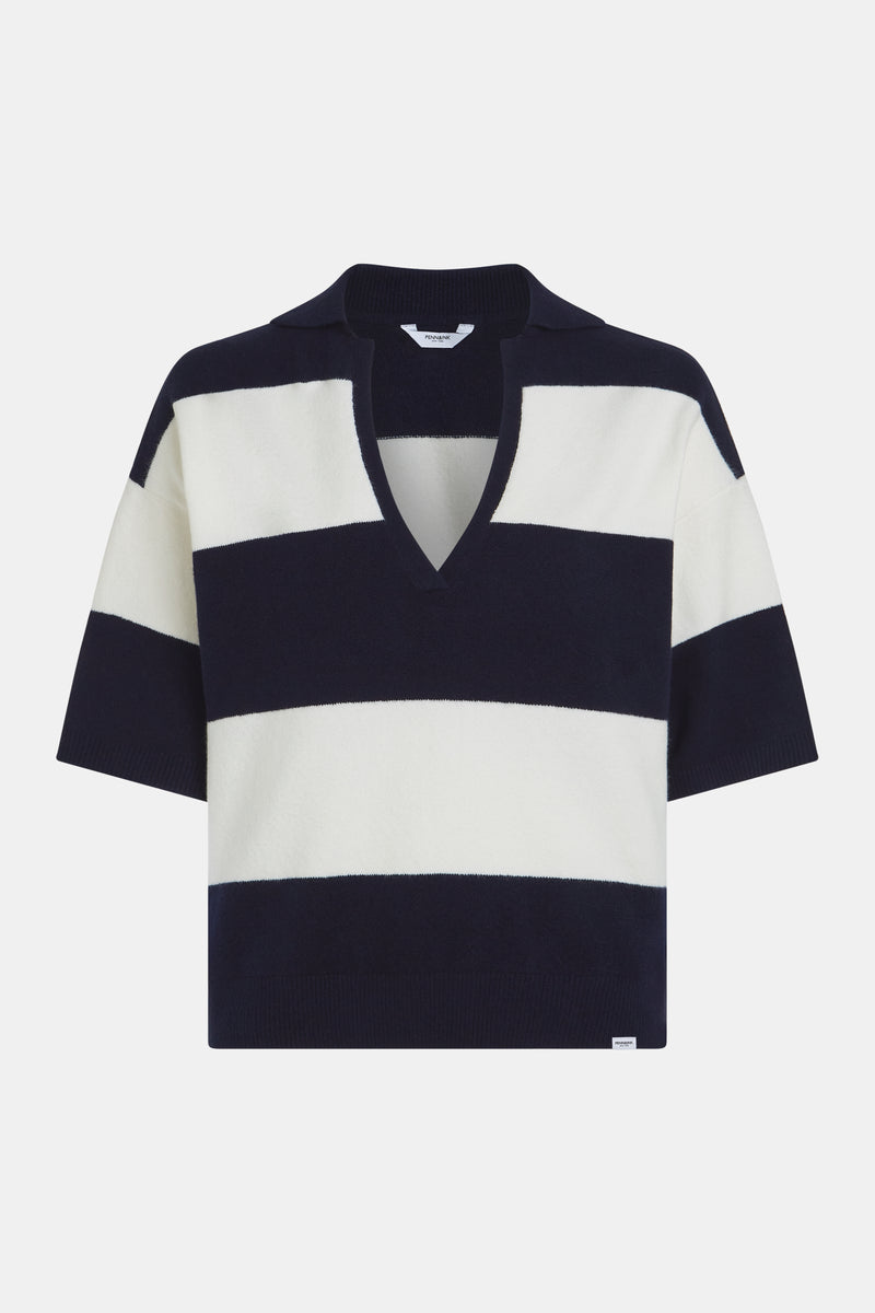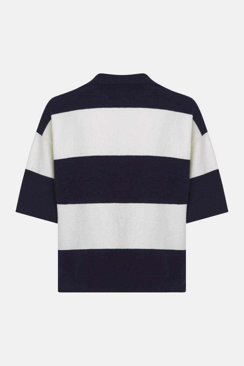 unkomplizierten Look. Die kurzen Ärmel und das markante Streifenmuster machen ihn zu einem vielseitigen Kleidungsstück.