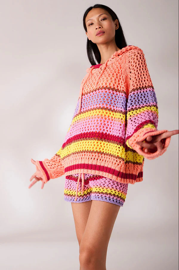 Hoodie Crochet Multi Stripe Abricot