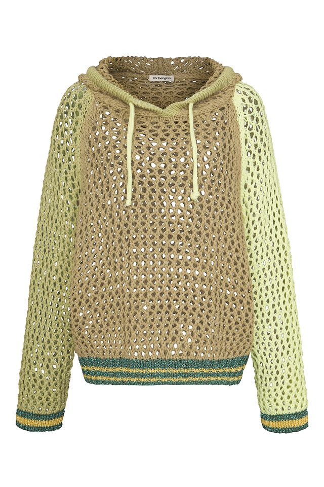 Hoodie Crochet Tricolour oliv