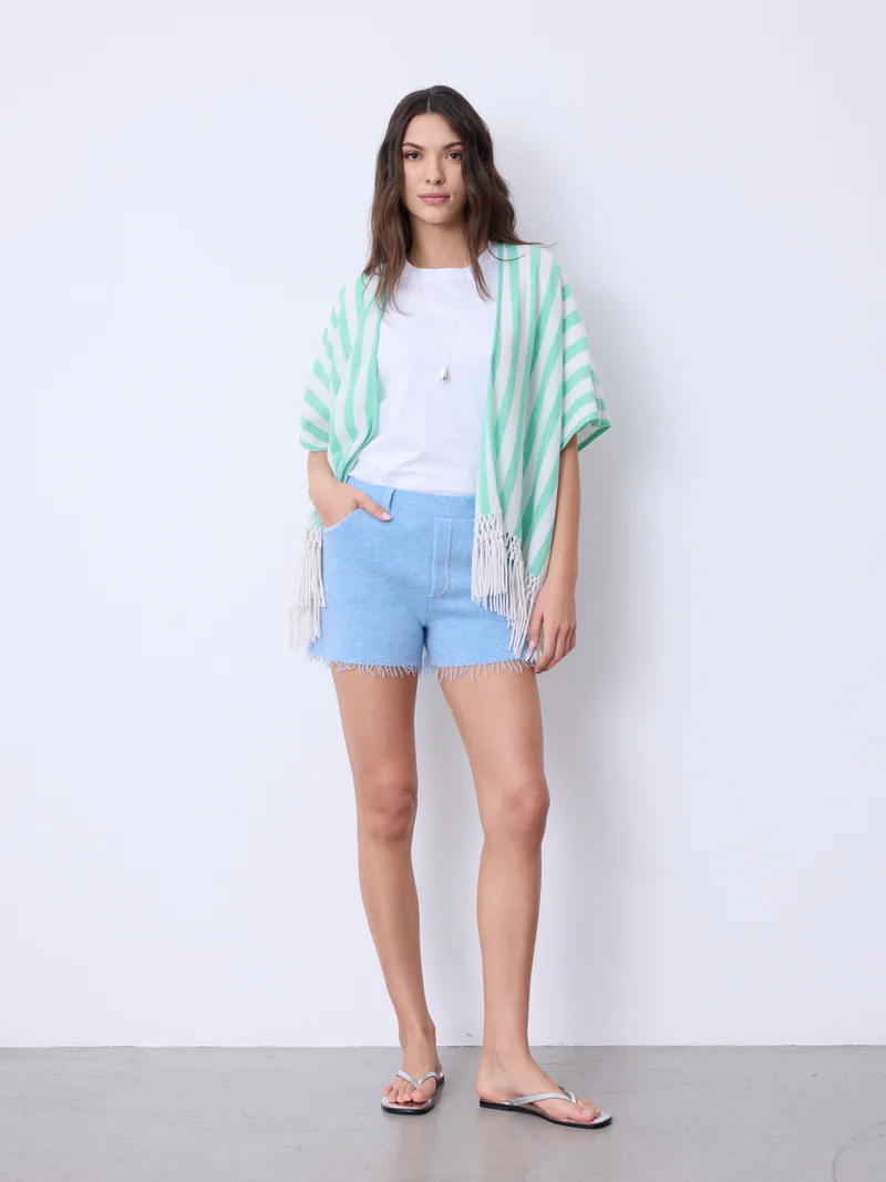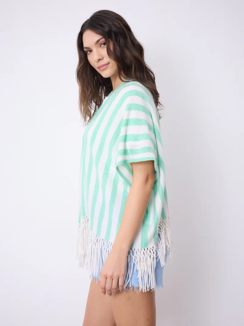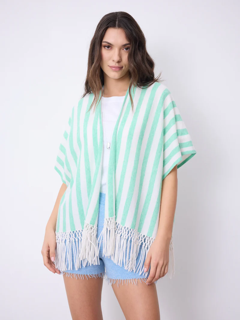 Damencape, kurze Ärmel - Vertikale Streifen - Ponyfrisur - Öffnung von Kante zu Kante... mehr