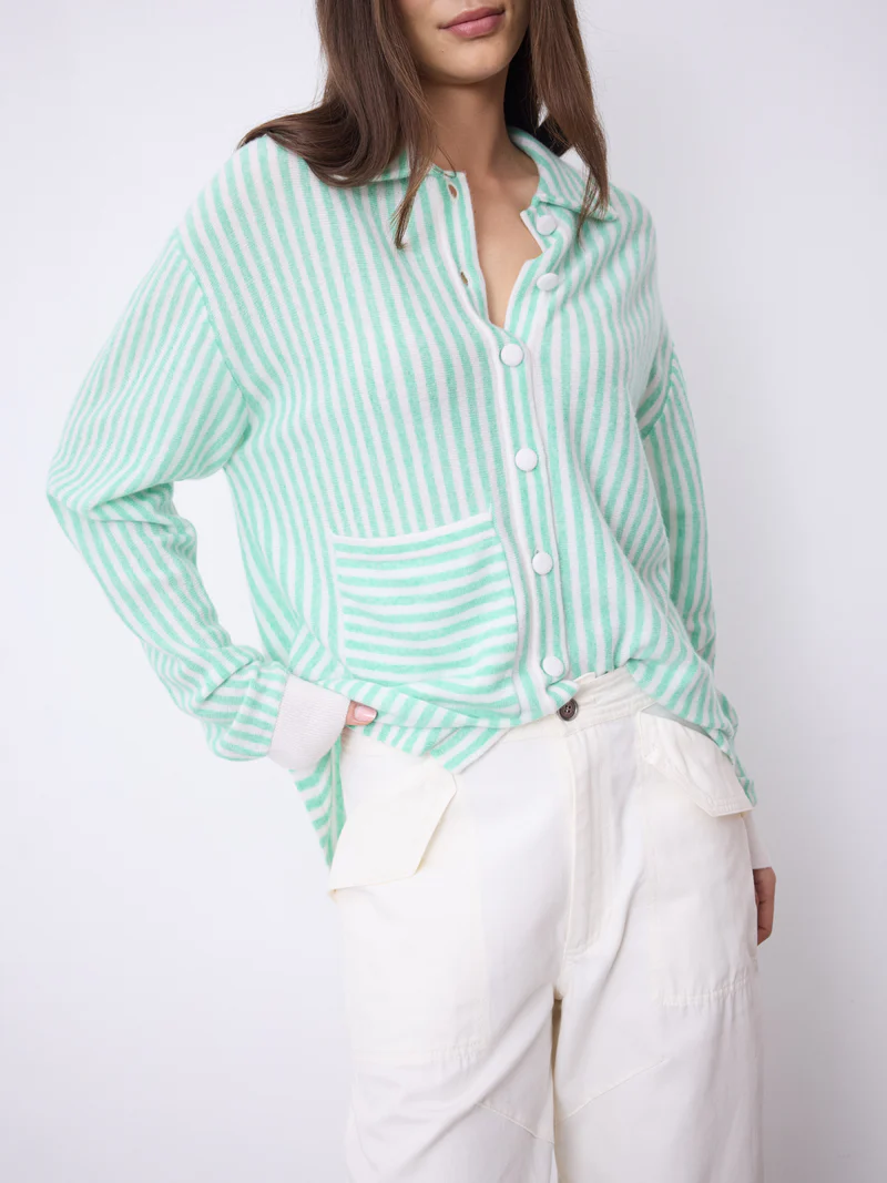 Damen-Bluse mit langen Ärmeln - Vertikale Streifen - Aufgesetzte Tasche mit horizontalen... mehr