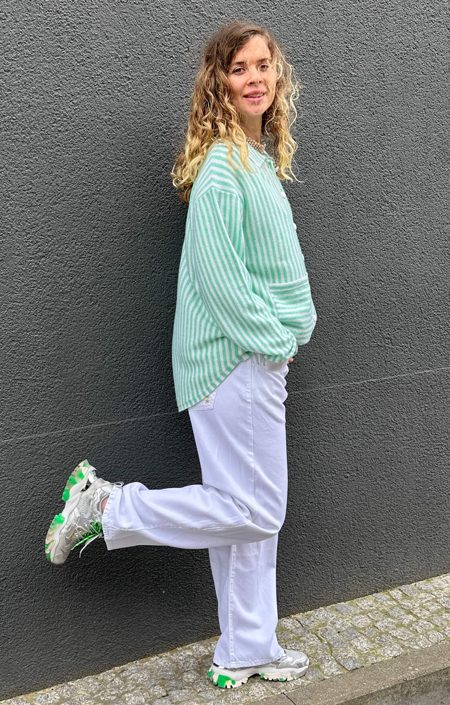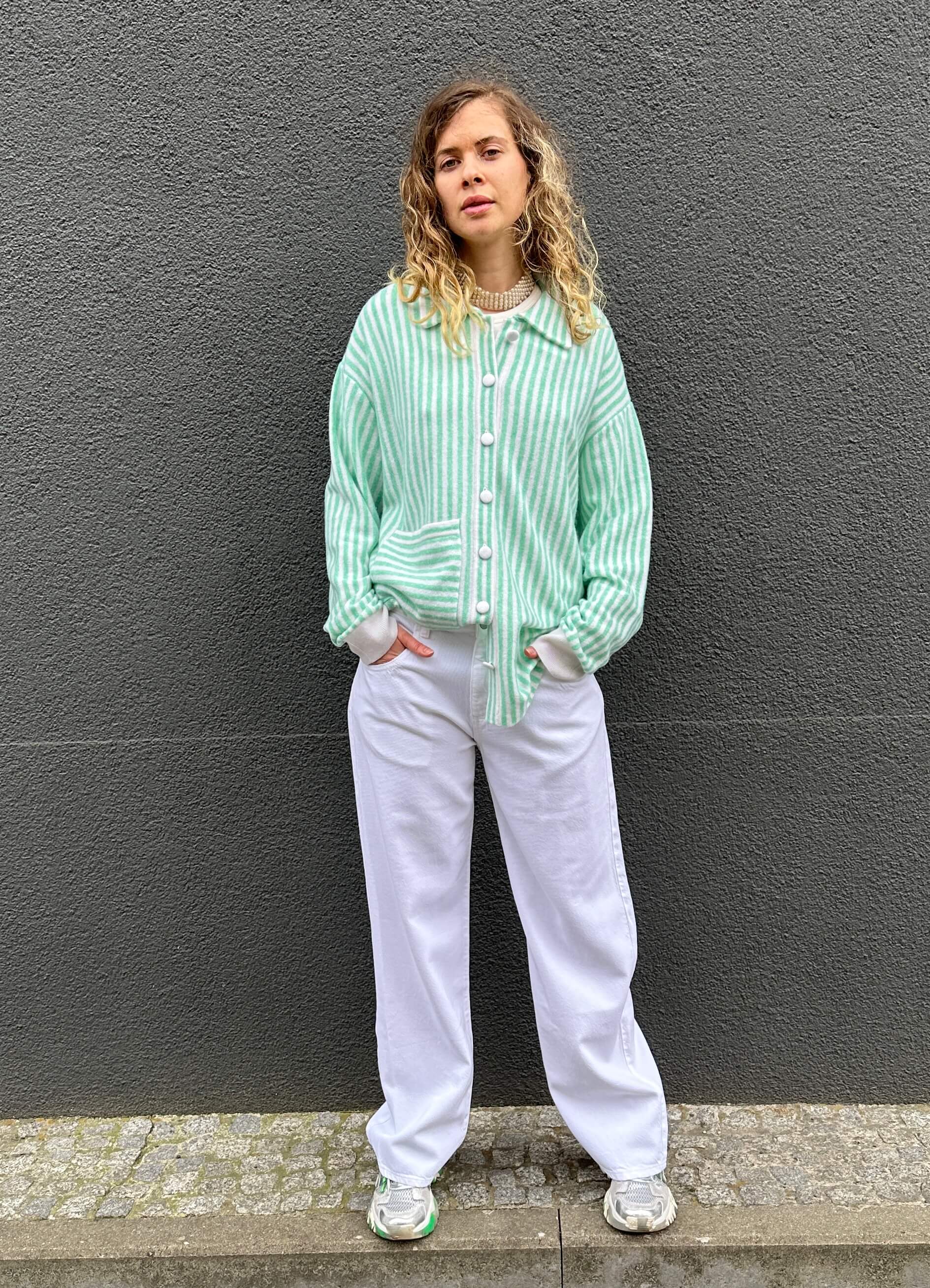 - Aufgesetzte Tasche mit horizontalen Streifen