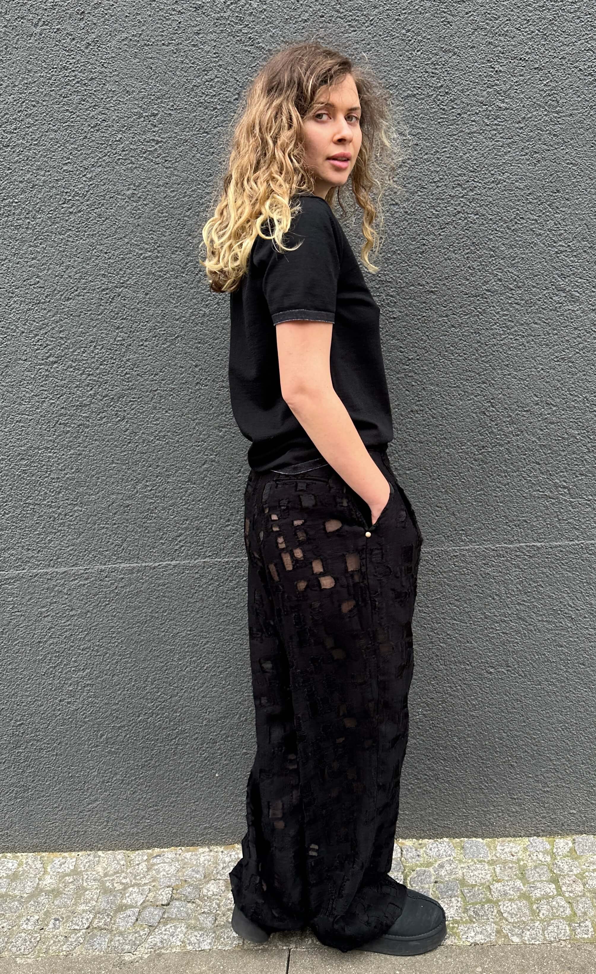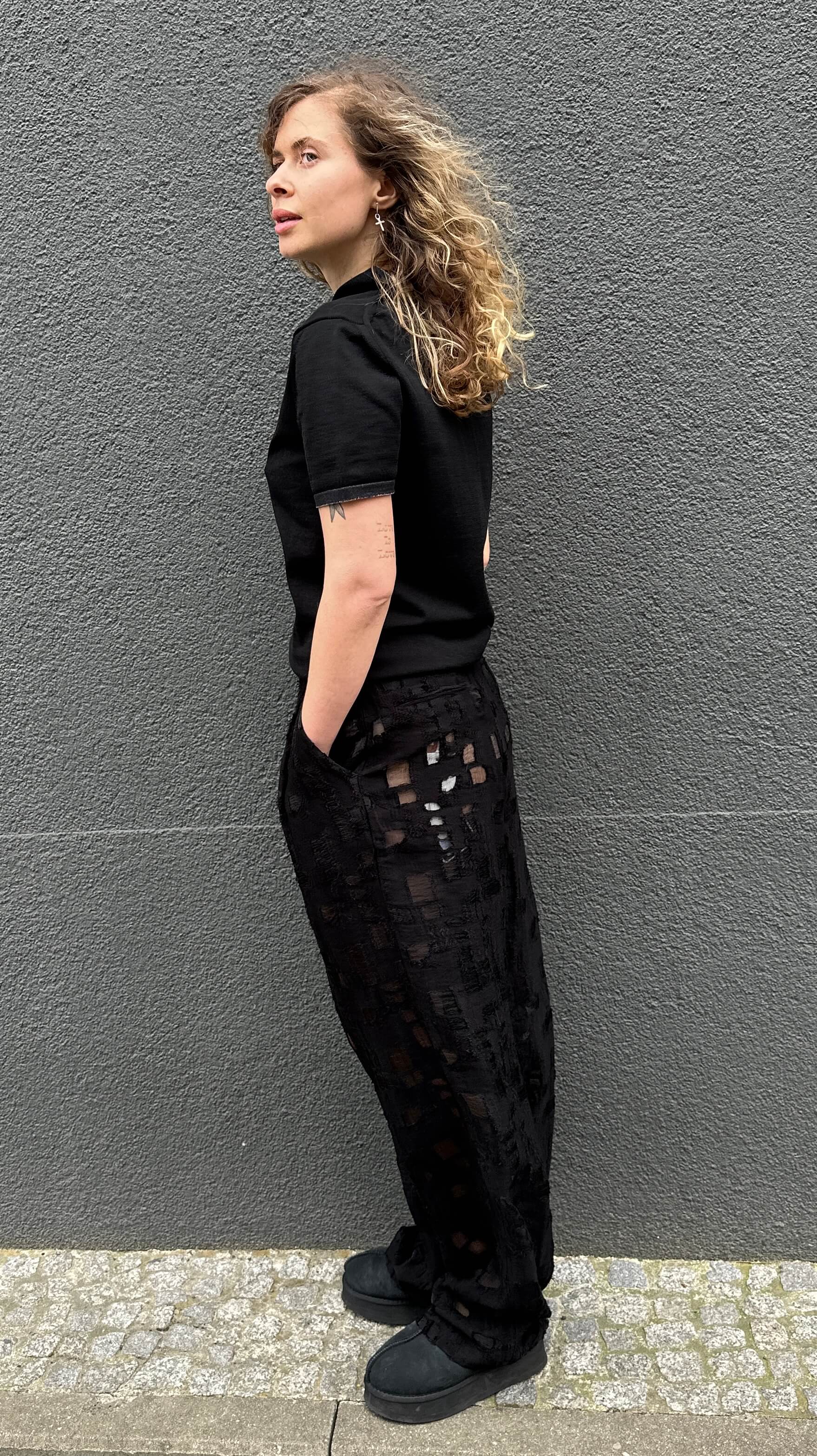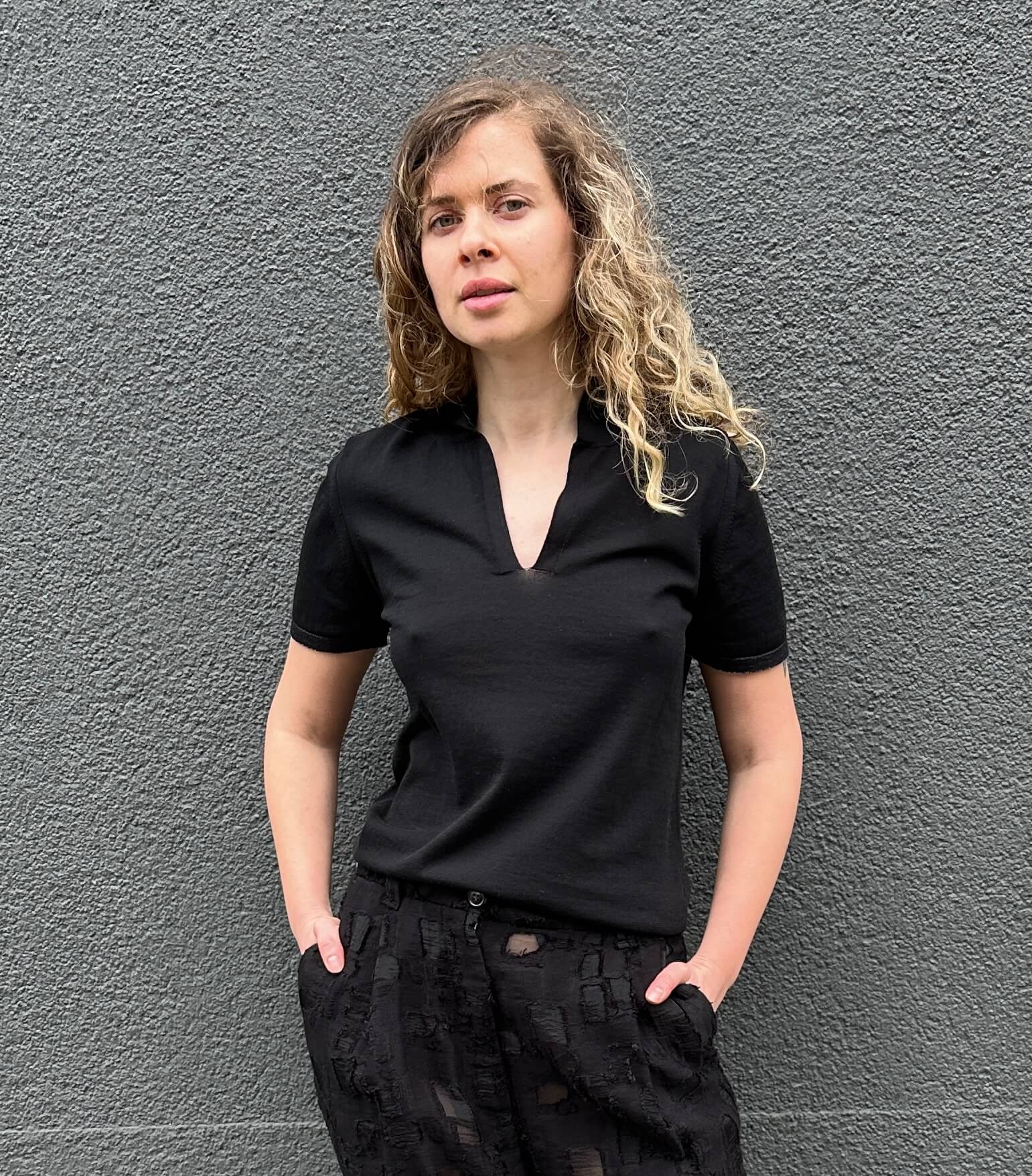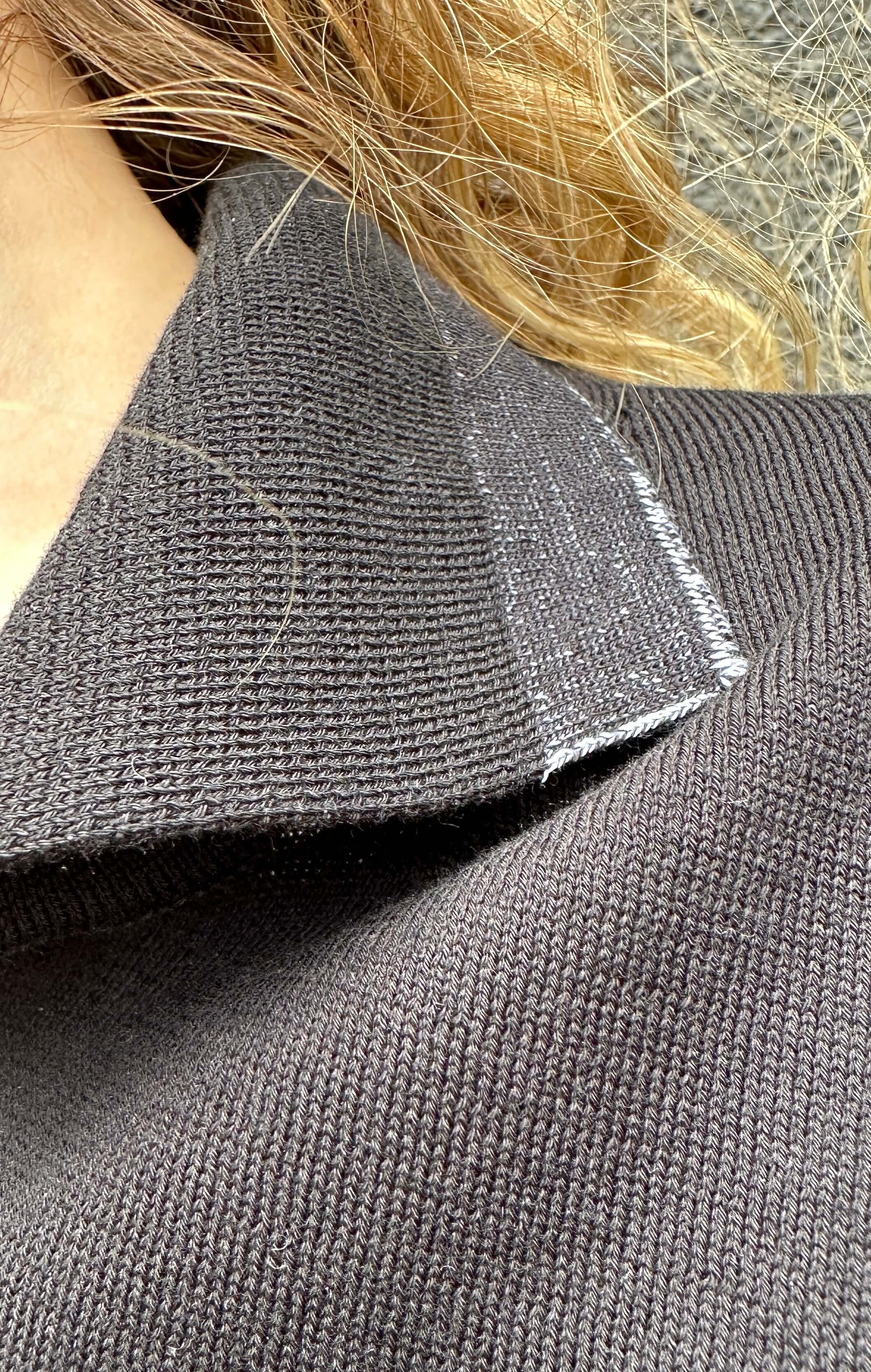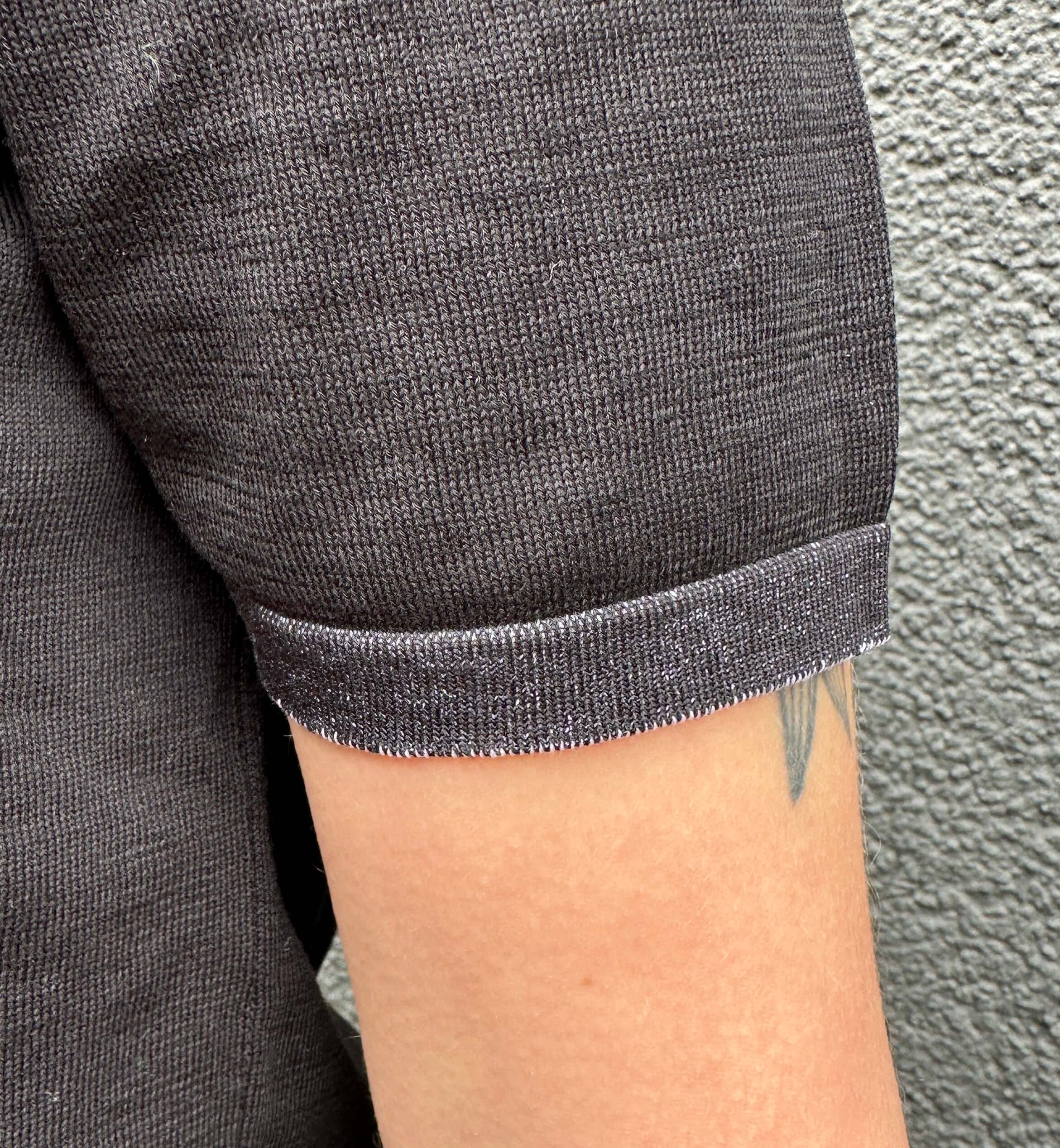 Edles Feinstrickpoloshirt in Schwarz mit V-Ausschnitt, Armbündchen in Schwarz/Weiß Melange 100% Feine Baumwolle. Fällt größengenau aus. Handmade with Love in Italy