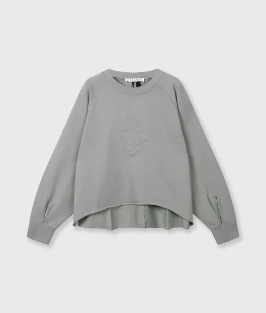 einem Saum in Raw Edge-Optik, einem auf dem Ärmel aufgestickten „10“-Monogramm und einem auf der Brust applizierten „Curly 10DAYS“-Label.