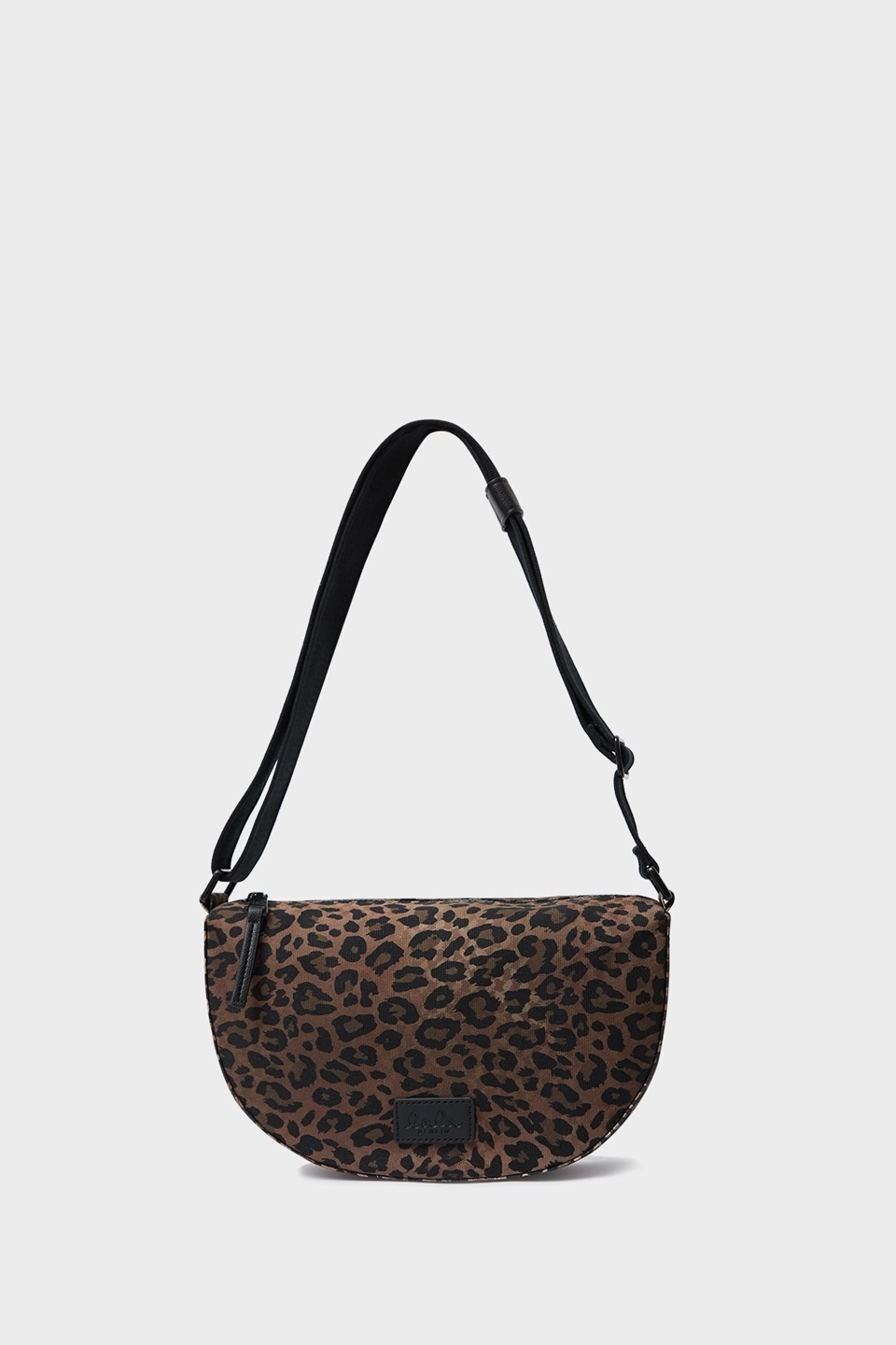 dunkelbraunes Leo-Muster trifft auf funktionales Design. Dank des längenverstellbaren Henkels kannst du Melly flexibel tragen:
