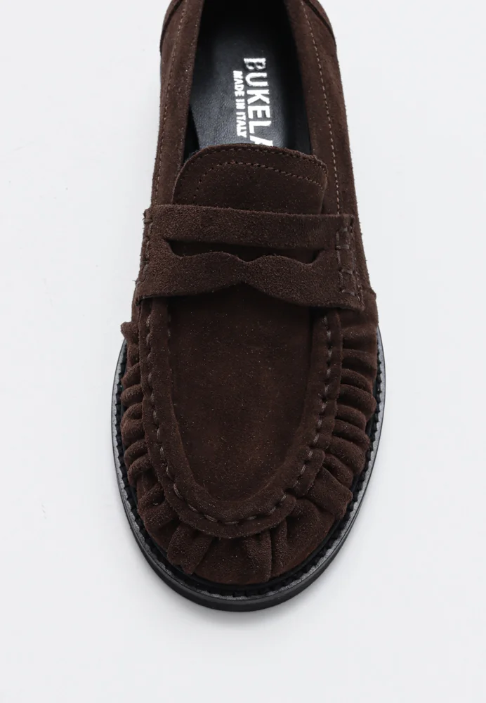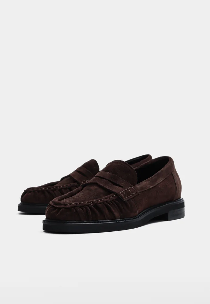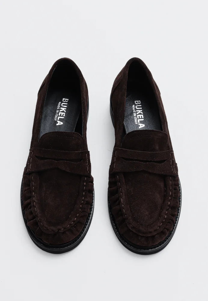 Dunkelbraunes italienisches Wildleder, EVA-Sohle und hervorragender Tragekomfort.