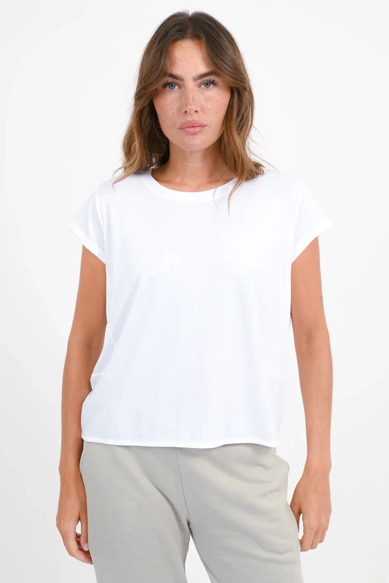 Rundhals-Ausschnitt Kellerfalte auf der Rückseite Rippeinsatz an... mehr