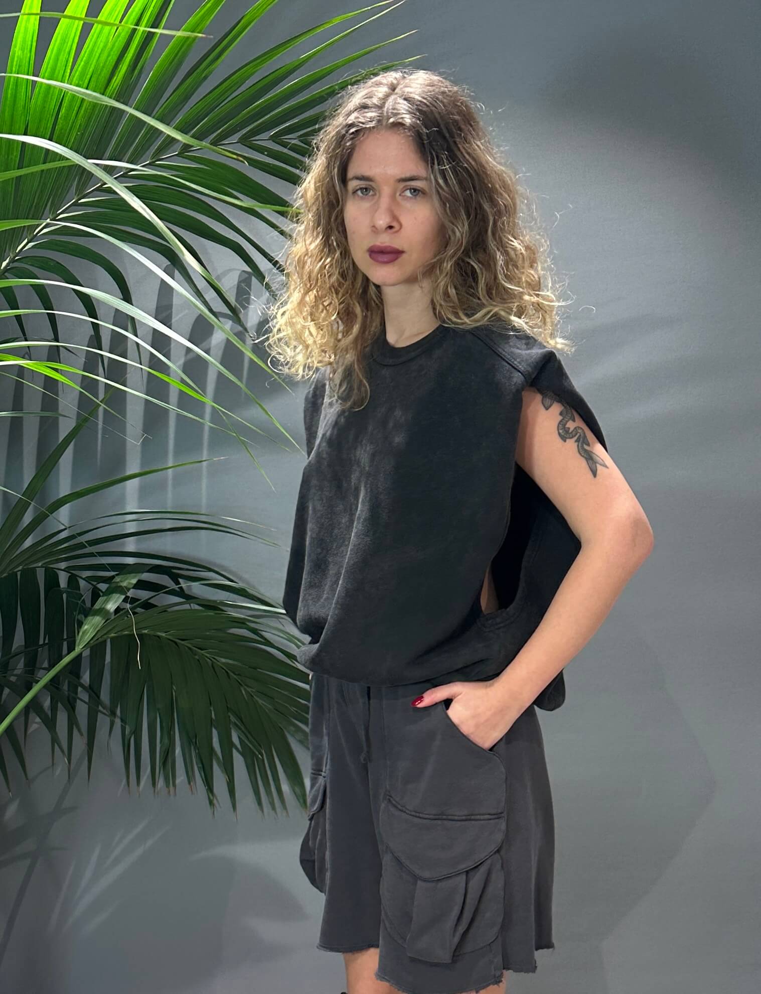 - Ärmelloses Sweatshirt mit breiten offenen Schultern