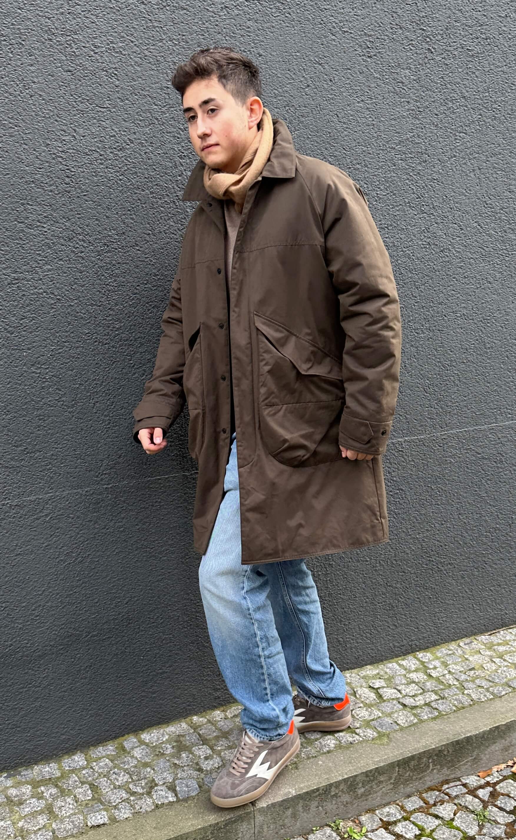 und die Fischertasche verleiht dem Kleidungsstück einen unverwechselbaren und funktionalen Touch. Ein Kleidungsstück,